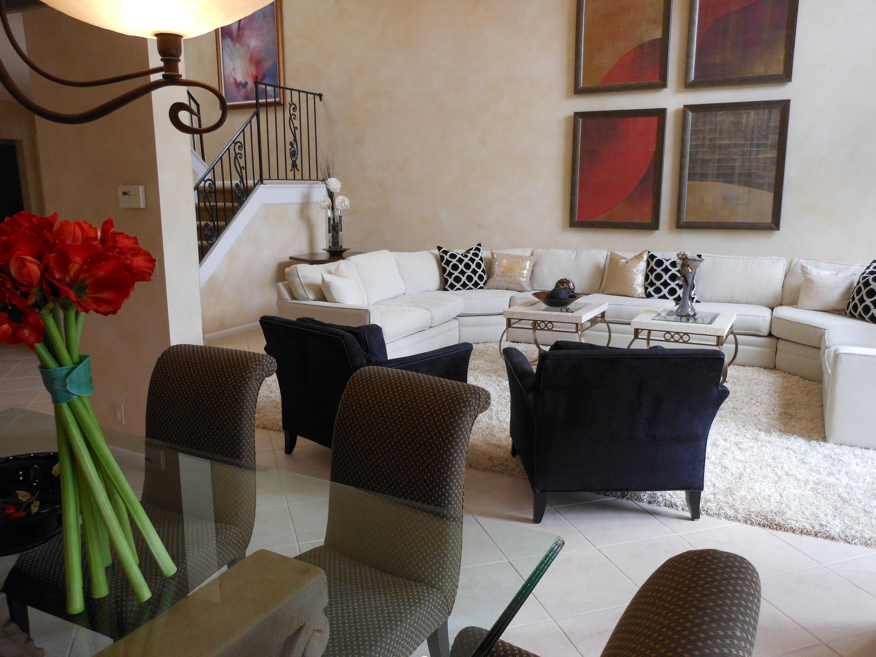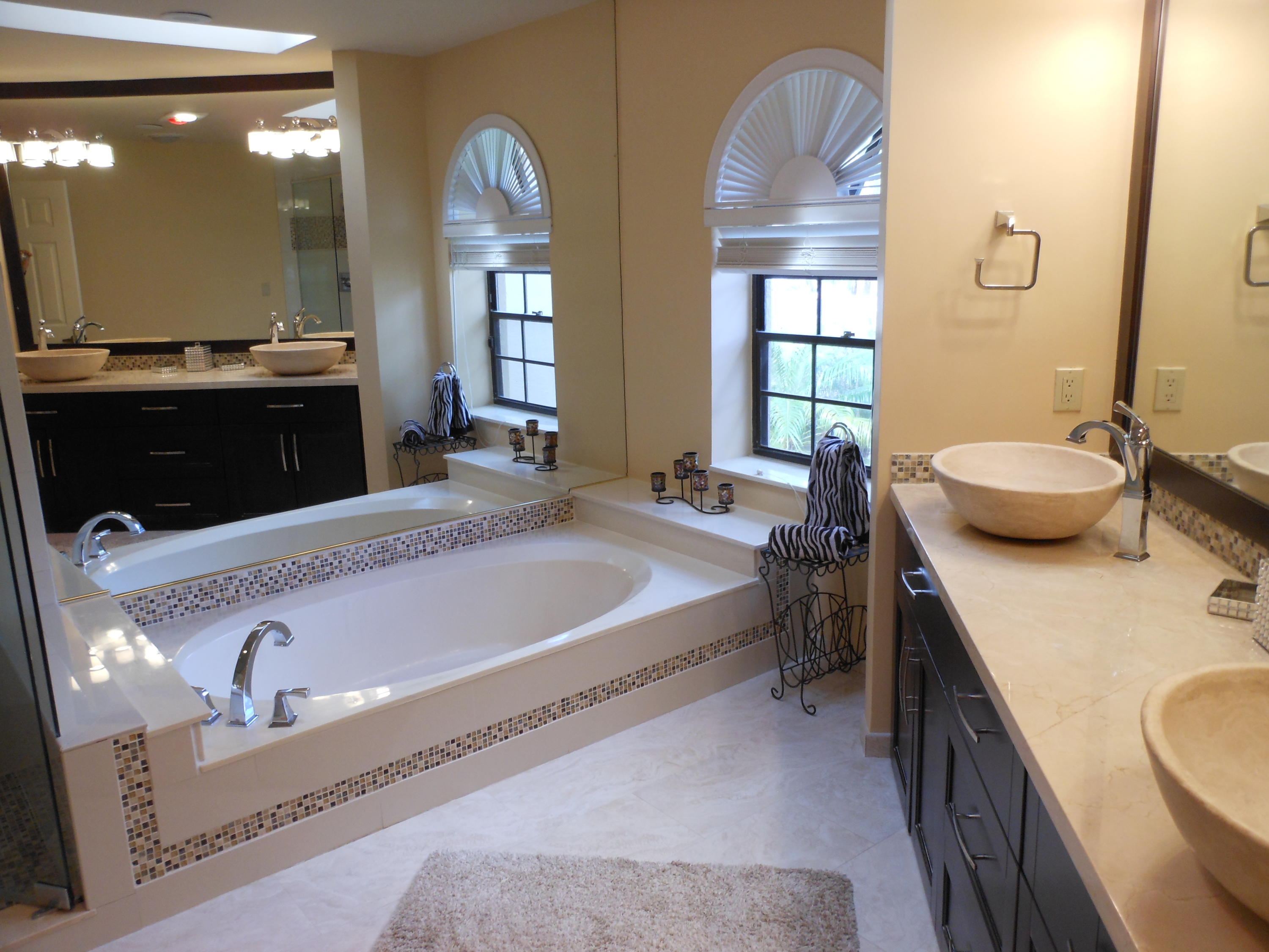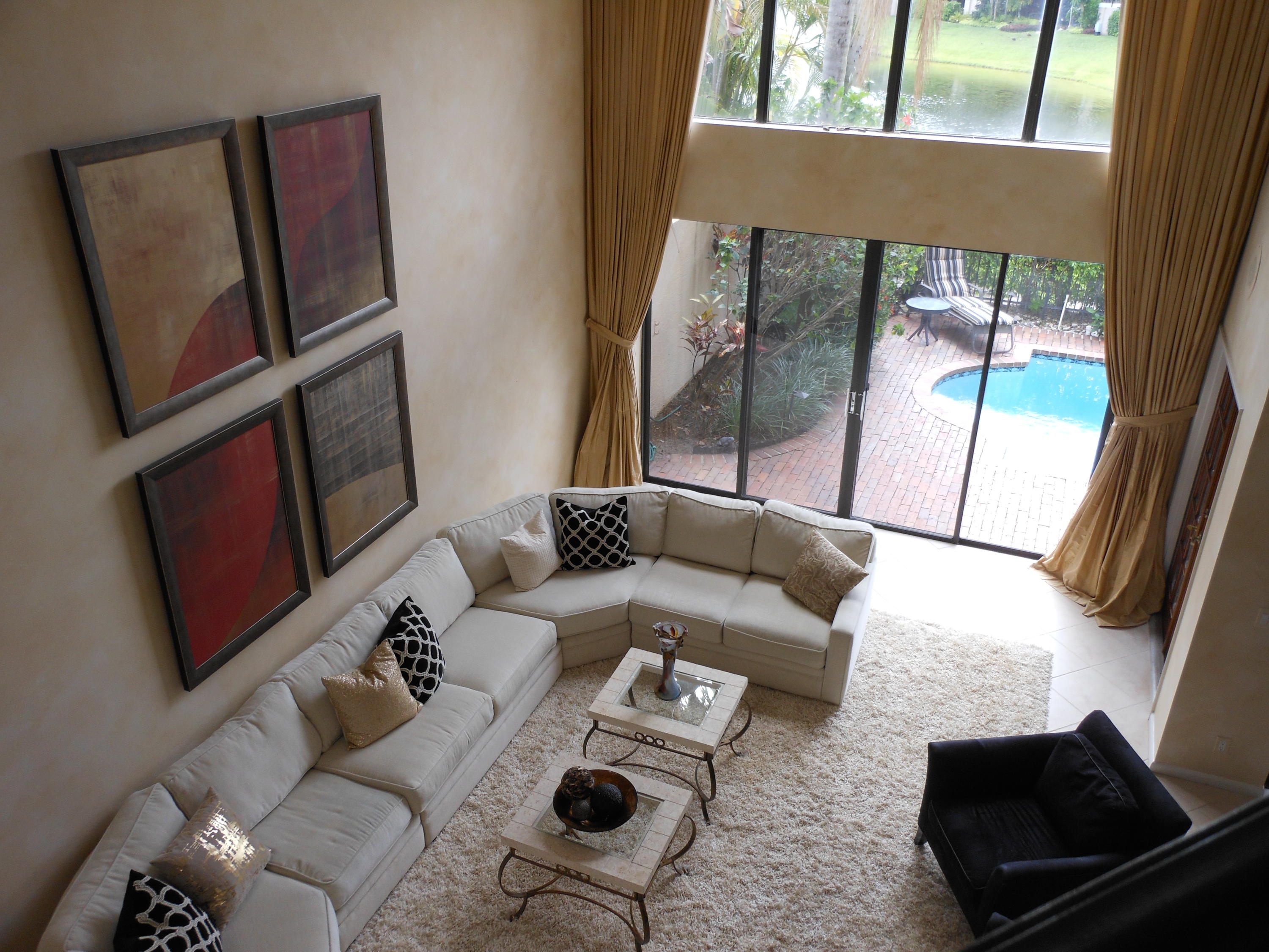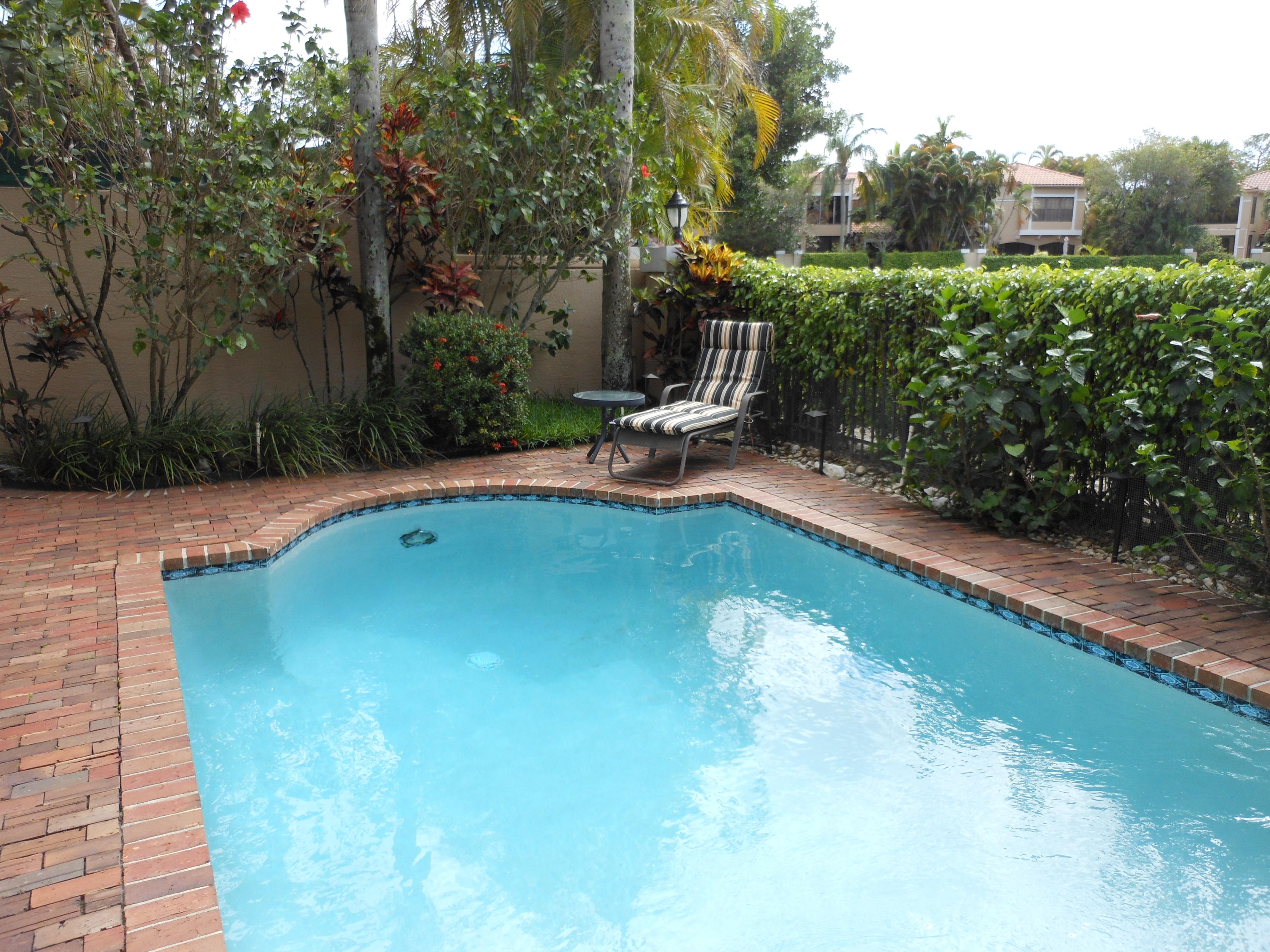 Beautiful 3 bedroom 3 bath home in sought after Caravelle in Boca Pointe. This home has its own pool and overlooks the lake. As you approach the home you pass through wrought iron gates going up a path surrounded by foliage. Open the solid wood doors you immediate feel the open space and see high ceilings. The huge living room overlooks the pool and the lake. There is a separate dining area. The kitchen has been redone with granite counters and stainless steel appliances. There are newer wood cabinets and a bay window overlooking the entrance path. The floors are ceramic tile in the main areas. There is no wall paper in the home. The washer and dryer are new. The two AC's are 5 years old. The roof has been redone.