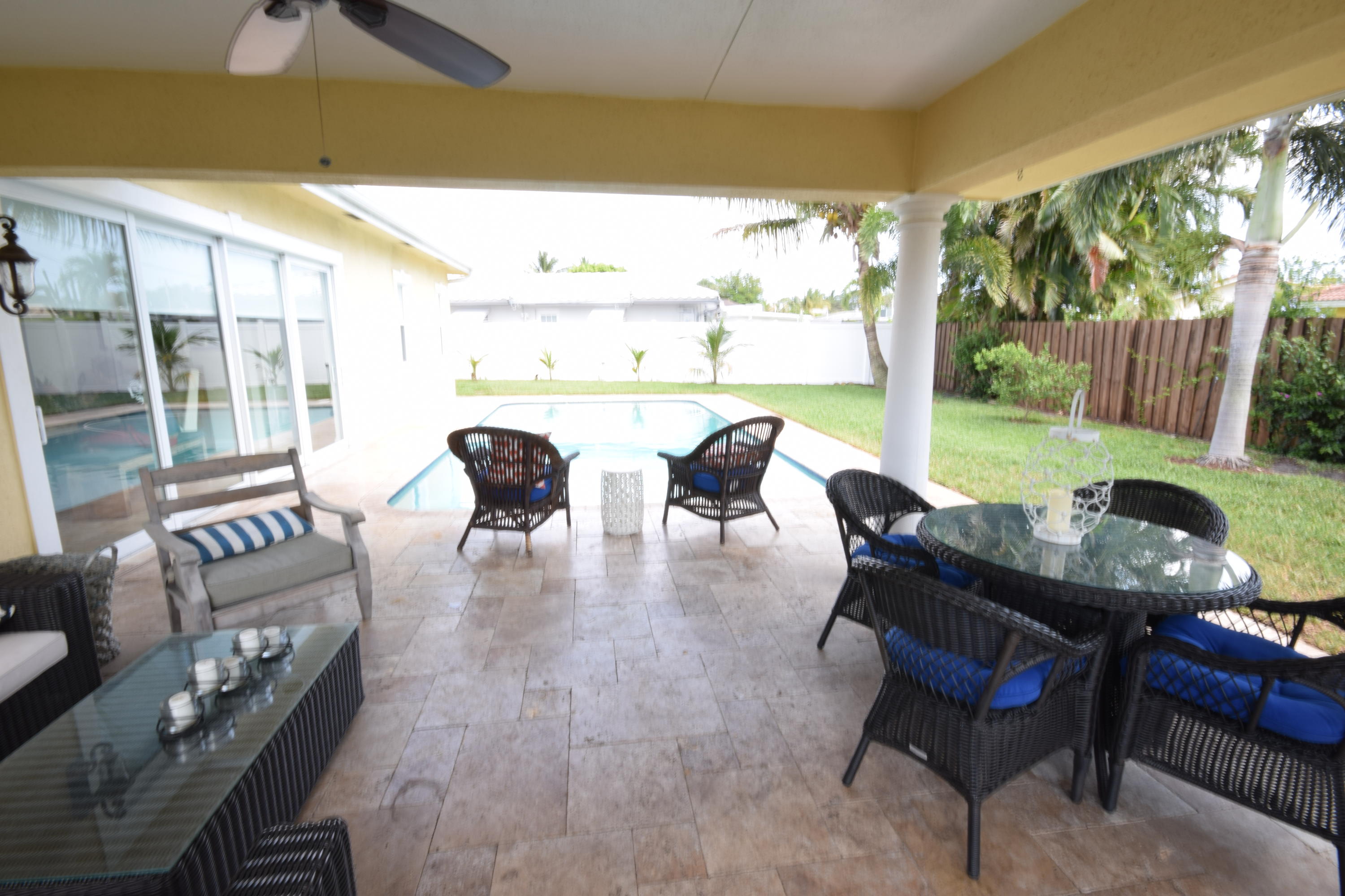 Spectacular pool home in Addison School district. Completely updated in 2014 - Kitchen features trendy white wood cabinets, custom tile backsplash, granite countertops, cook island/breakfast bar, samsung stainless appliances. All impact windows and doors, plantation shutters, inside laundry, new washer/dryer, crown molding, fresh paint, tile floors, 2 a/c units(1 unit replaced 2014), high hats throughout, master has double closets & updated bathroom. Triple split floorplan, garage is converted to 4th bed