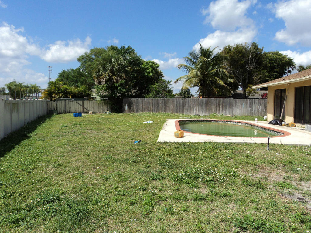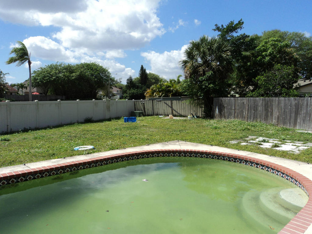 Short Sale. House has potential. Will need work in the kitchen, needs paint inside & out, pool needs to be clean up and yard needs to be cleaned up, needs window treatment, etc. Roof was replaced in 2006, huge lot with fenced pool & patio area. Split bed room plan with master off of kitchen and 3 bed rooms on the other side. Backs up to Spanish Isles Dr. On a cul de sac. Walking distance to elementary school. South exposure. Appliances are not warranted. Not sure this home will be approved FHA/VA due to condition of kitchen