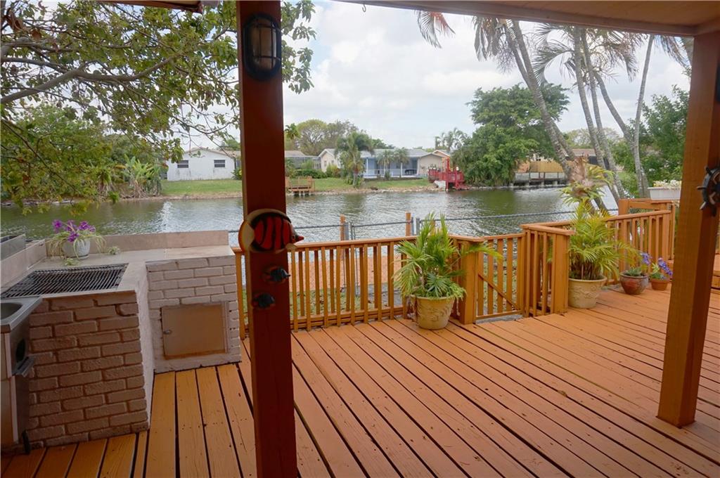 You can have it all! Updated, waterfront 3/2 home w/ an outside oasis! Open floor plan w/ pockets of privacy. New stove, microwave, electrical panel, water heater & washer/dryer. Travertine floors & granite kitchen counters. Jacuzzi tub & walk in in master. Dining area w/ additional space in the kitchen for breakfast nook & office. Freshly painted deck w/ whirlpool, shower, built-in grill w/ sink, lighting & fans. Enjoy your private waterfront deck while surrounded by your coconut, guava & avocado trees.
