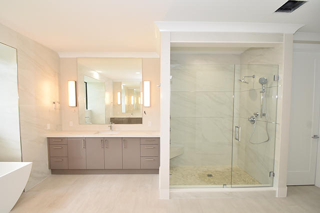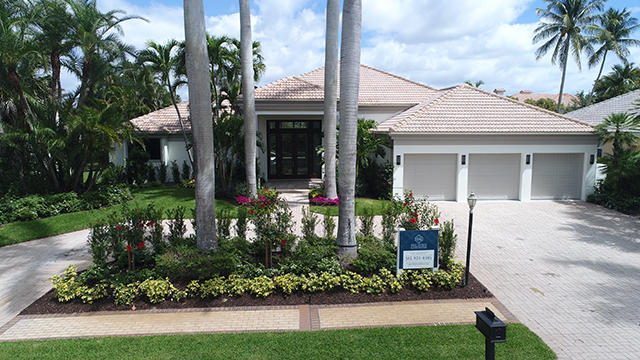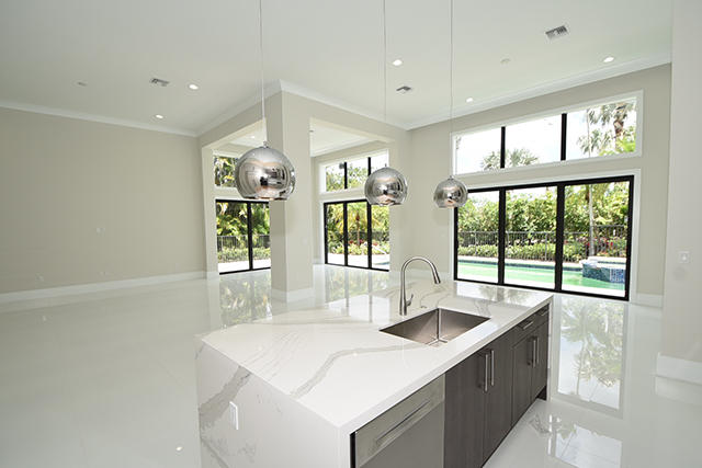 This contemporary one-story (no steps) 3-bedroom + office home in St. Andrews Country Club has been COMPLETELY RENOVATED DOWN TO THE STUDS! The home features hurricane IMPACT glass throughout, pristine white glass tile floors in the main living areas, wood porcelain tile in the bedrooms, high-end finishes, and a sleek, Euro-style kitchen that is open to the great room. The kitchen features quartz countertops with a waterfall island and upscale Bosch appliances. The master suite has generous closet space and offers a spa-inspired bathroom with an oversized shower plus soaking tub. All guest bedrooms are en-suite. Outdoors, enjoy the lushly-landscaped privacy and a large pool. Circular driveway plus 2 1/2-car garage. This home is MOVE-IN ready!