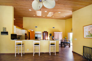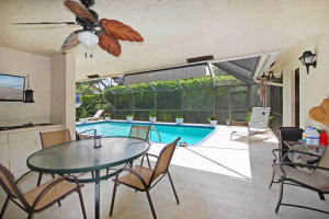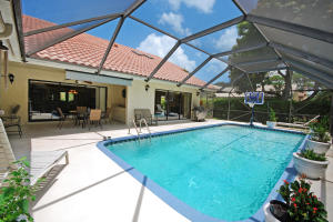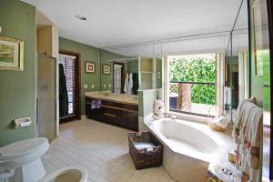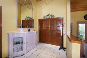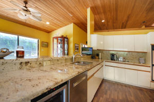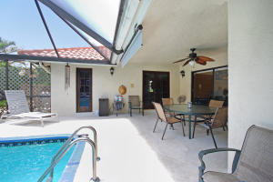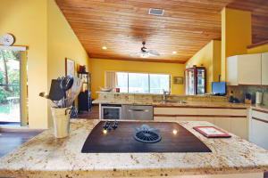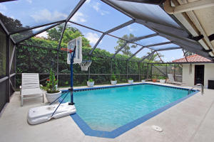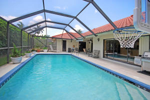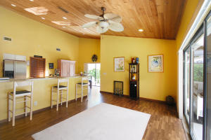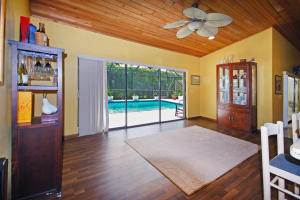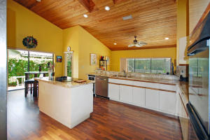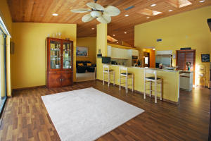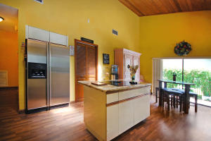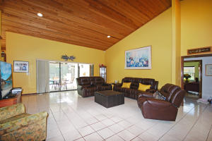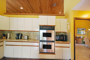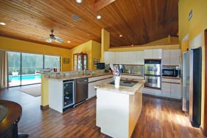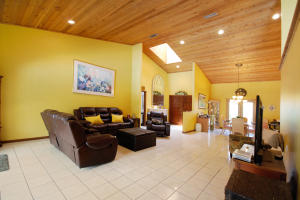 This bright and lovely home is located in the middle of tranquil New Floresta. It is a true gem for its space, floor plan, high ceilings and tradition. With natural light coming in every area of the home from its skylights, windows and sliding glass doors, this home is rich in ambiance. It features real wood panel ceilings with recessed lights throughout. The kitchen is spacious, with a cooking island, stainless steel appliances, double wall ovens, a wine cooler and plenty of storage space. It displays rich granite countertops throughout the kitchen and has an eat-in area with large windows. The entire kitchen area overlooks the pool. The large living room with its high ceilings and skylights provides you plenty of room to decorate creatively your own ambiance. Sliding glass doors from