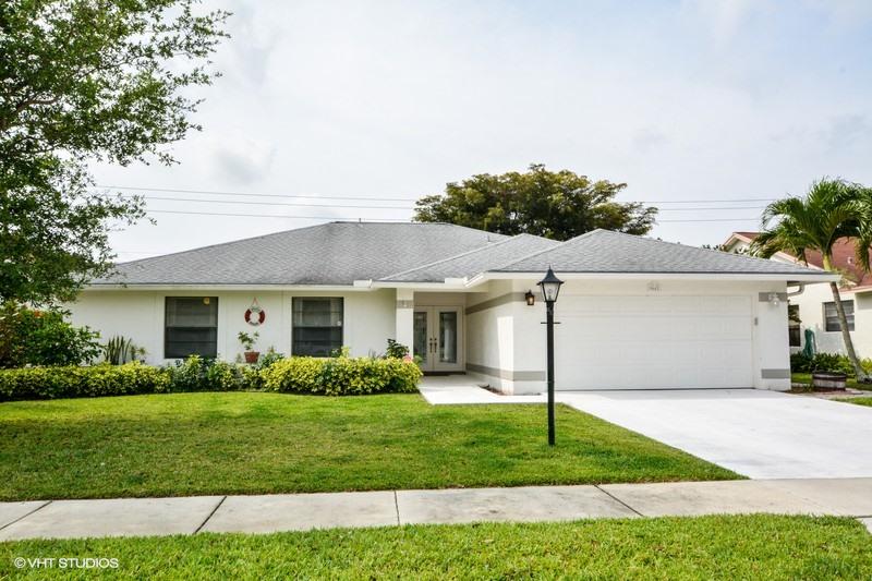 FANTASTIC single-family home in a FABULOUS Boca Raton location with great schools! All this and a low HOA.THIS ONE WON'T LAST...This gem is located on a serene private lot on a double cul-de-sac street. Pass through the glass double-door entry into a well maintained home feturing vaulted ceilings,4 bedrooms, 2 full baths and 2 car garage. The master bedroom features a walk-in closet and master bath has dual sinks & separate shower and tub. A new HWH has just been installed.The outdoor area is perfect for entertaining on the covered,screened, over-sized patio and there is lots of room for a pool. HOA includes cable,2 heated pools,hot tub,clubhouse,tennis,basketball as well as walk/jog paths.A perfect family neighborhood just a short distance to great shopping and Houses of Worshi