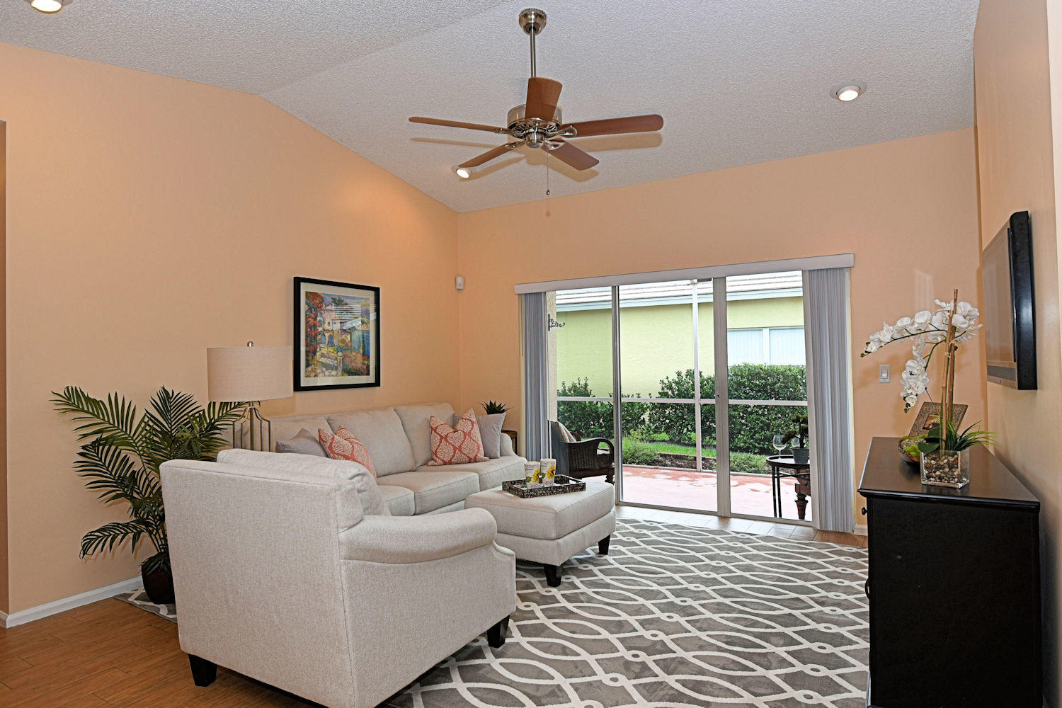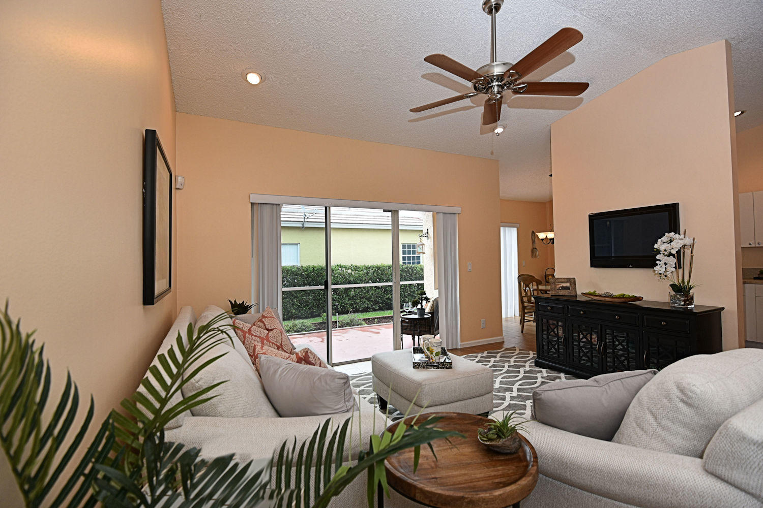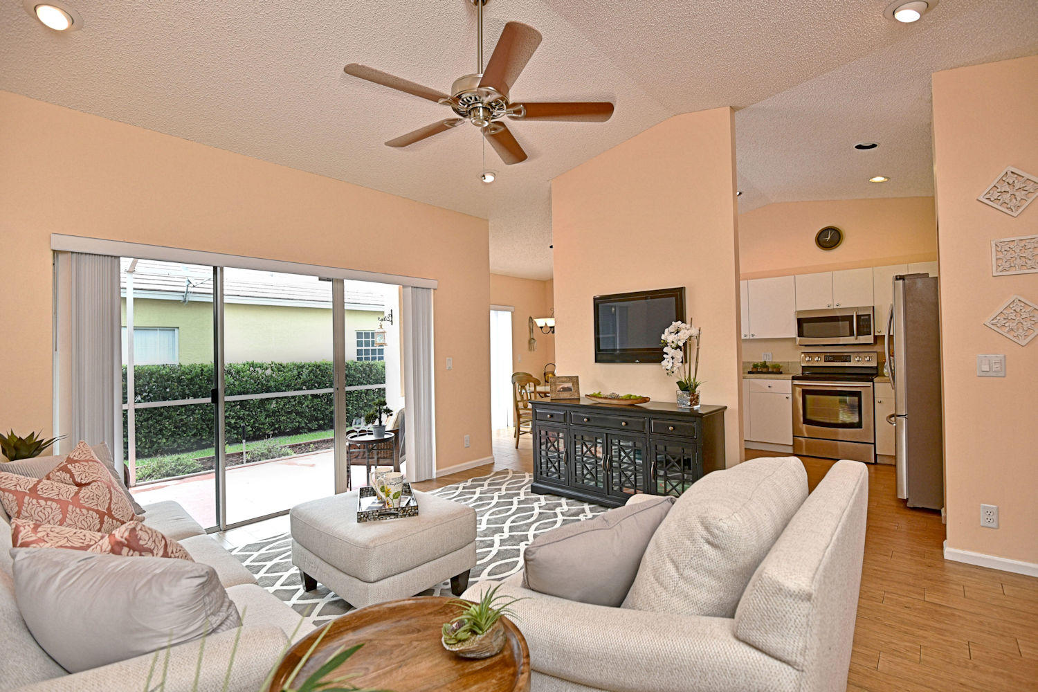 Come see this wonderful 2 bedroom + Den/Bedroom or Flex room, 2 bath home with garage on a quiet street. Enjoy this well maintained home with stylish open concept home with ''wood'' tile flooring, updated kitchen with stainless steel appliances, screened in patio, updated baths and a brand new roof (April 2017). River Bridge is a delight: clubhouse with 2 heated pools, tennis, basketball, tot lots and playground areas. Come enjoy Florida's resort lifestyle. The maintenance fee includes cable, HBO, lawn maintenance, security, and all the amenities. Enjoy the convenience to shopping and downtown West Palm Beach just minutes away. Call today!