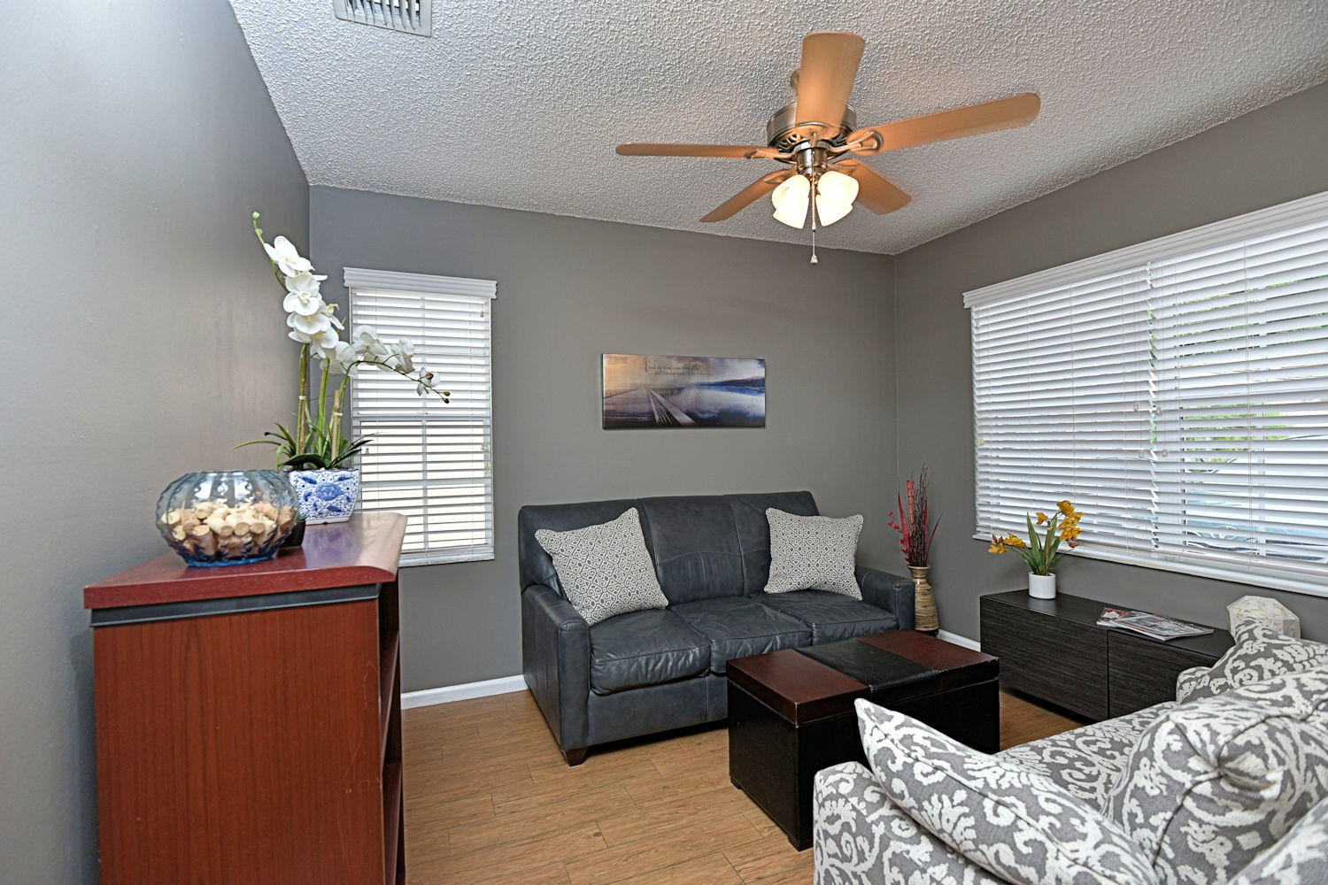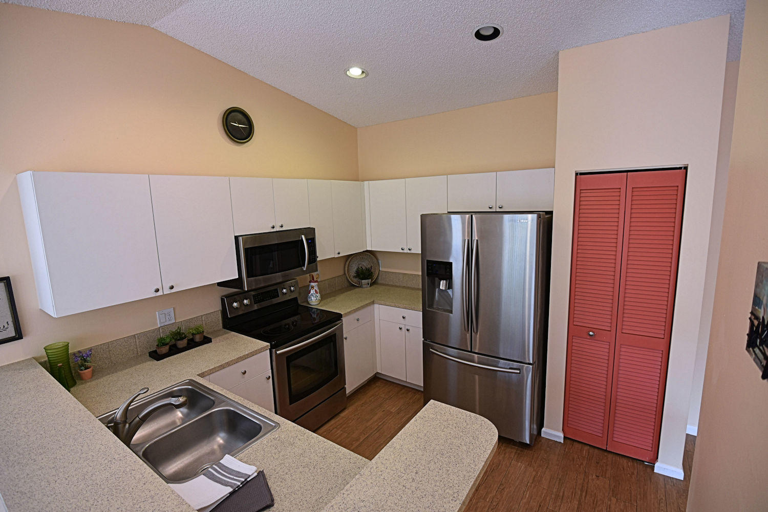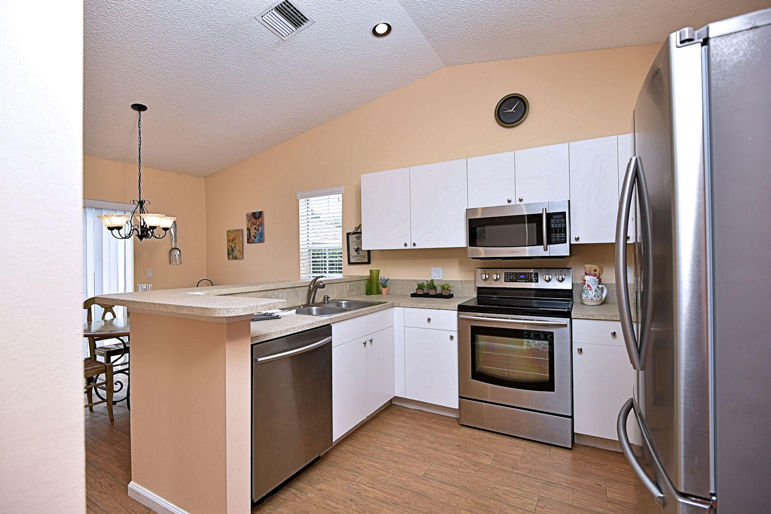Come see this wonderful 2 bedroom + Den/Bedroom or Flex room, 2 bath home with garage on a quiet street. Enjoy this well maintained home with stylish open concept home with ''wood'' tile flooring, updated kitchen with stainless steel appliances, screened in patio, updated baths and a brand new roof (April 2017). River Bridge is a delight: clubhouse with 2 heated pools, tennis, basketball, tot lots and playground areas. Come enjoy Florida's resort lifestyle. The maintenance fee includes cable, HBO, lawn maintenance, security, and all the amenities. Enjoy the convenience to shopping and downtown West Palm Beach just minutes away. Call today!