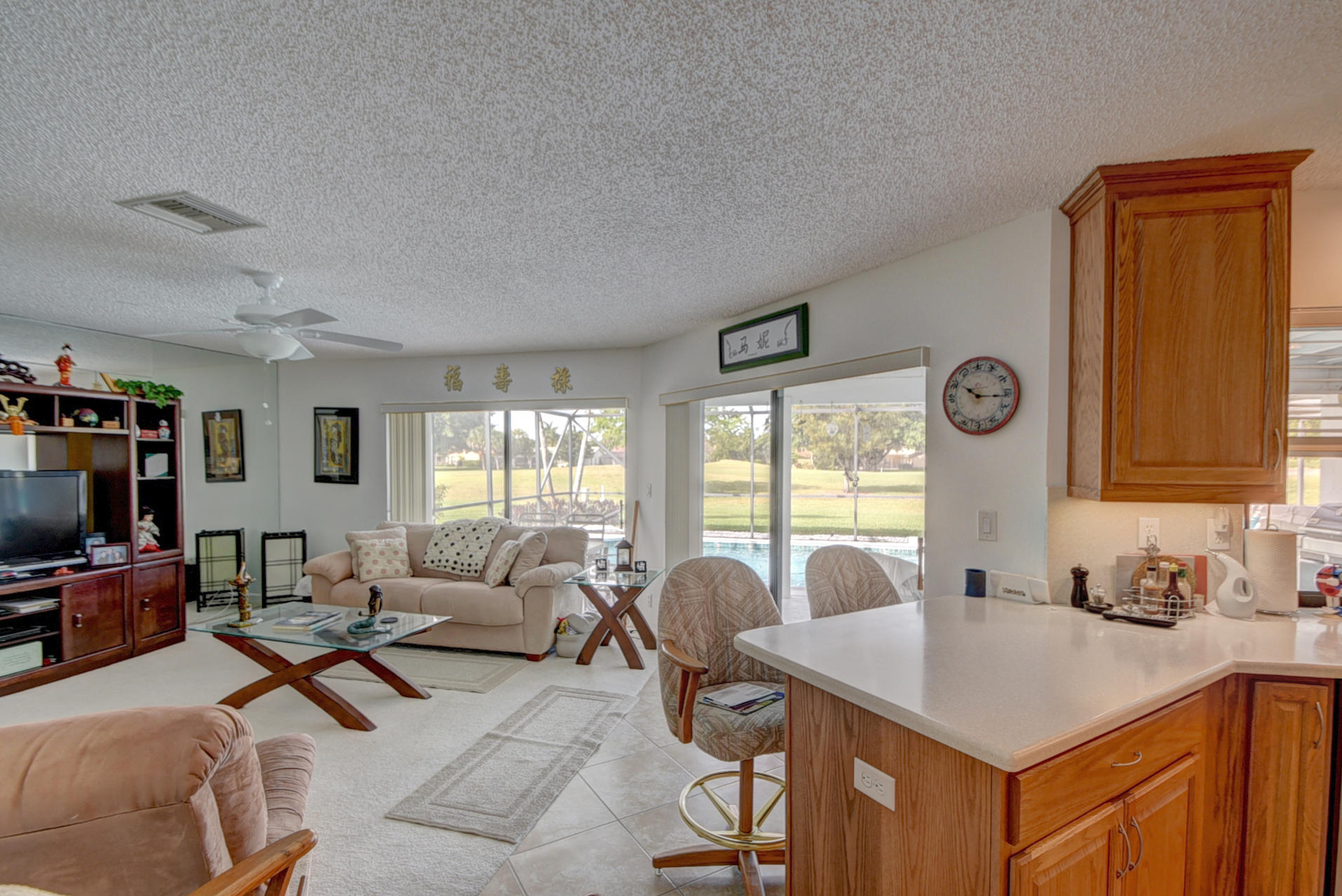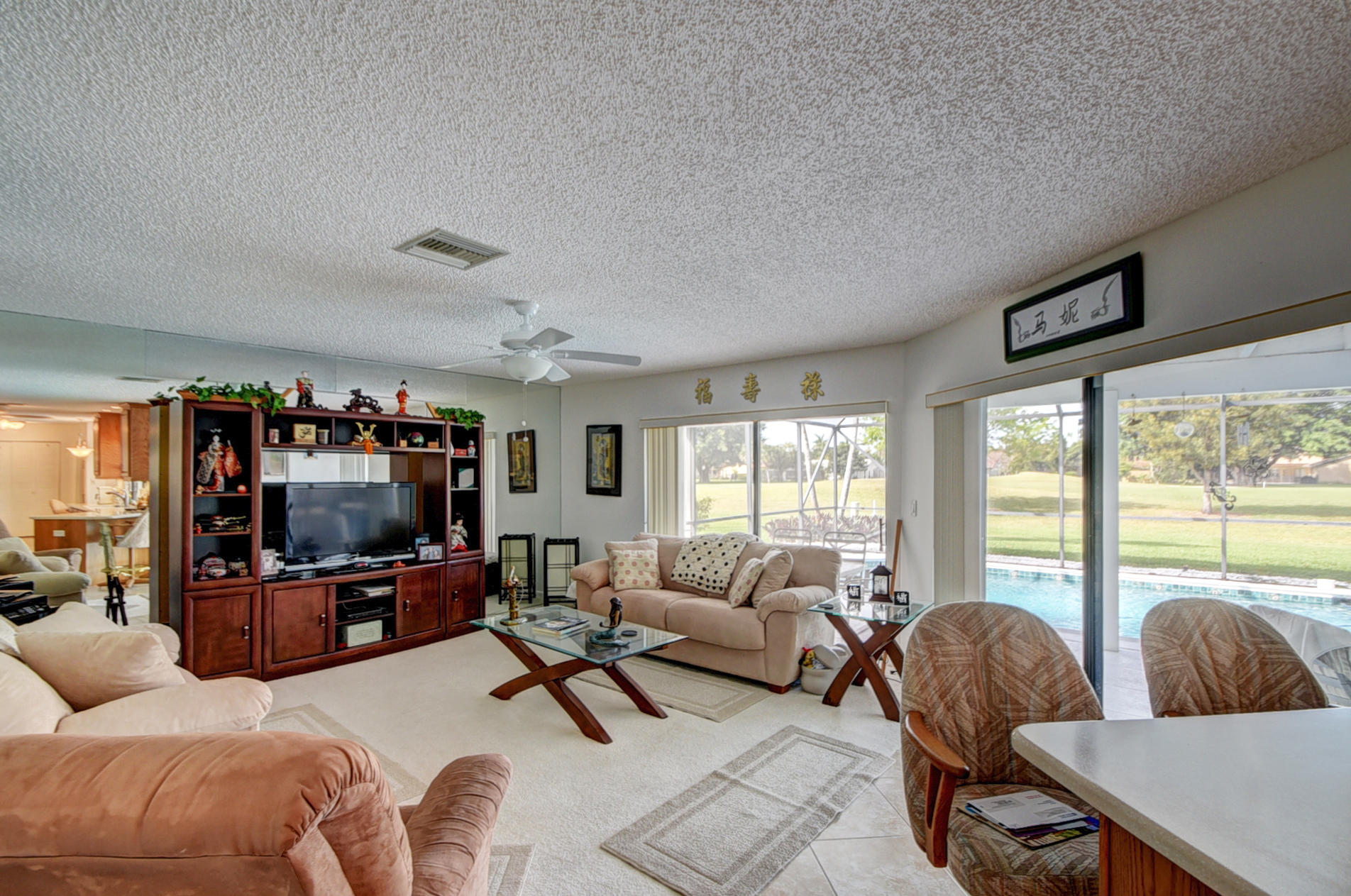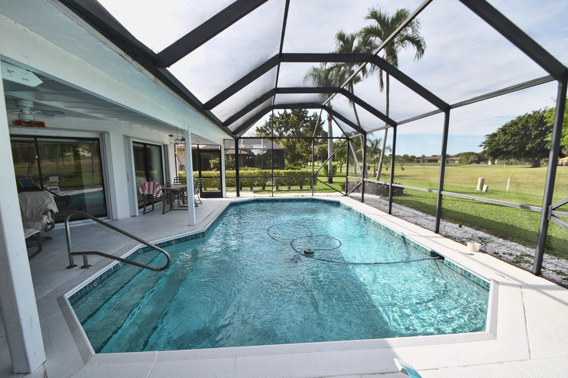 Location! Location! Location! This 4 bedroom, 3 bath, 2 car garage pool home is in a great Boca Greens location, just 1/2 mile west of 441 and an easy walk whether you are going to a house of worship or to play a round of golf. This home has a brand new Rheem Air Conditioner that was installed in 2017. Large living room/dining room area and family are open to the kitchen which looks out at the beautifully maintained pool area and the green to the 17th hole of the golf course. Don't let this one get away. Seller is motivated and ready to make a deal. Buyer is responsible for a $1000 non-refundable transfer fee at closing.