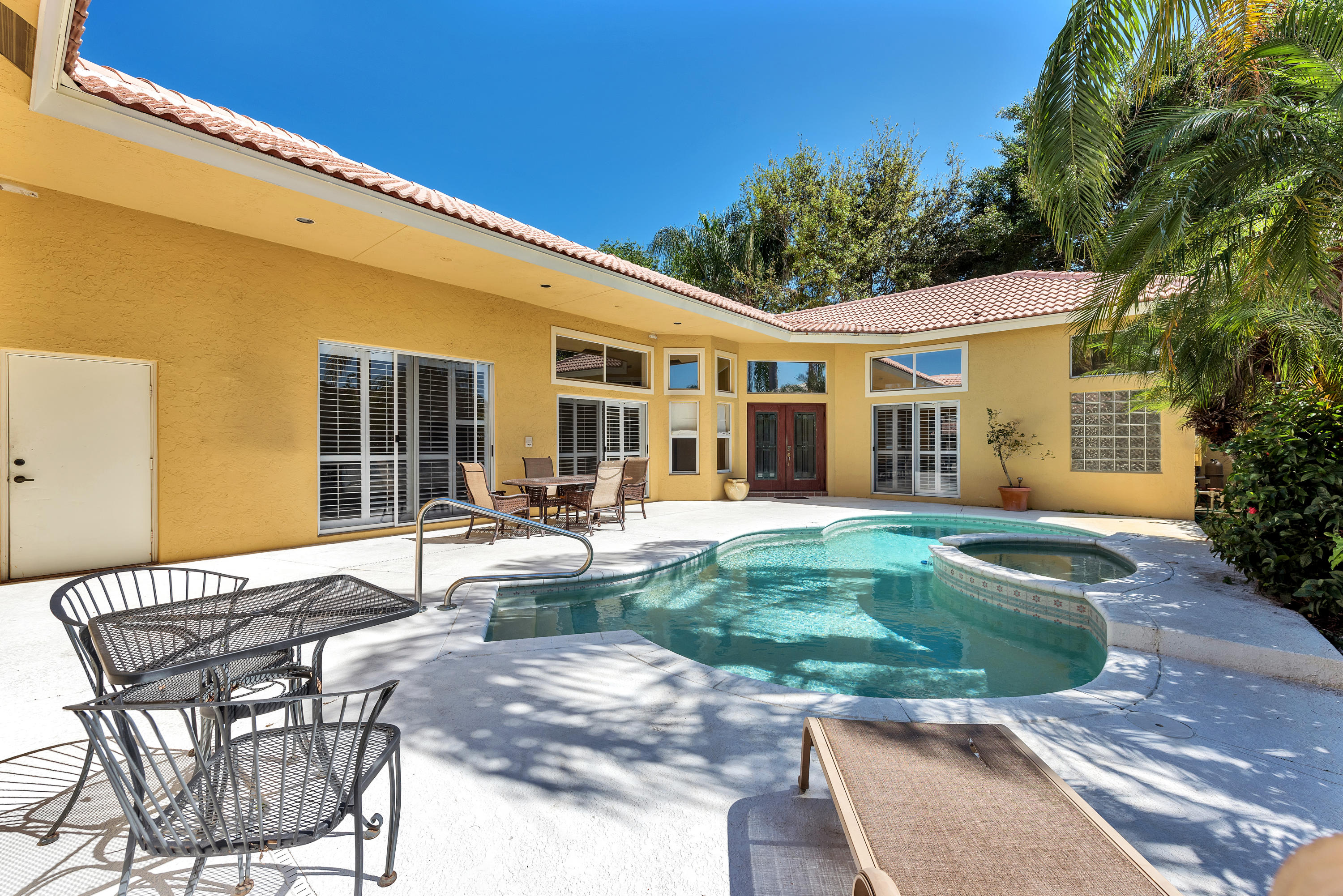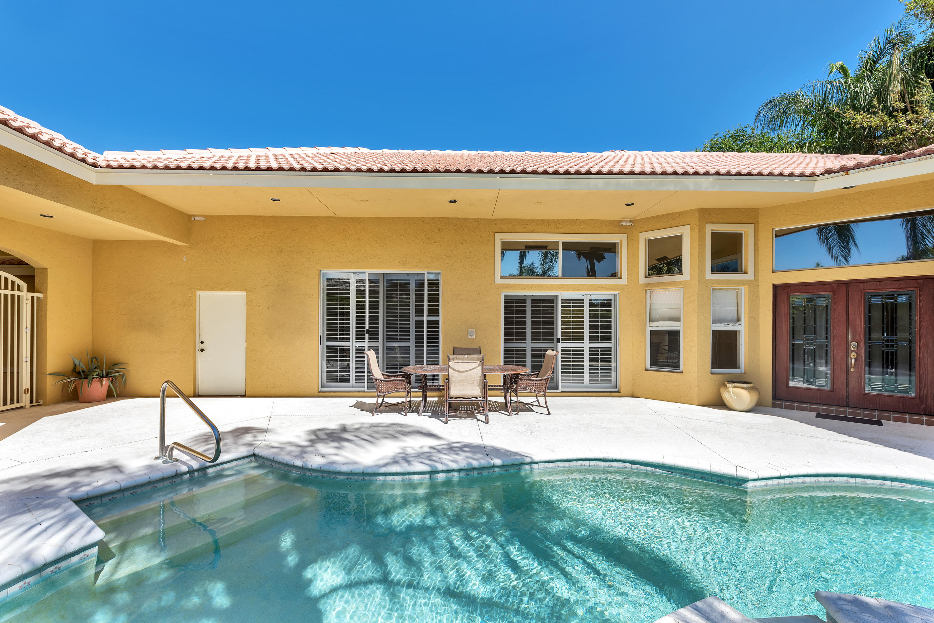 Boca Isles South very desirable gated community in West Boca Raton. ONE LEVEL 3BR, 3BA, 2 Car Garage, SINGLE FAMILY HOUSE, NO STAIRS! Gorgeous POOL/SPA, Ideal location, around the corner - short distance to clubhouse and amenities, This COURTYARD home with its GUESTHOUSE is ideal for a quiet office or in-laws suite. Southern Backyard EXPOSURE, Move in ready this home could use some quick refresh (painting and flooring in bedrooms). Tennis Courts available, community pool, clubhouse , pet friendly neighborhood!