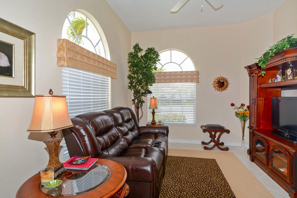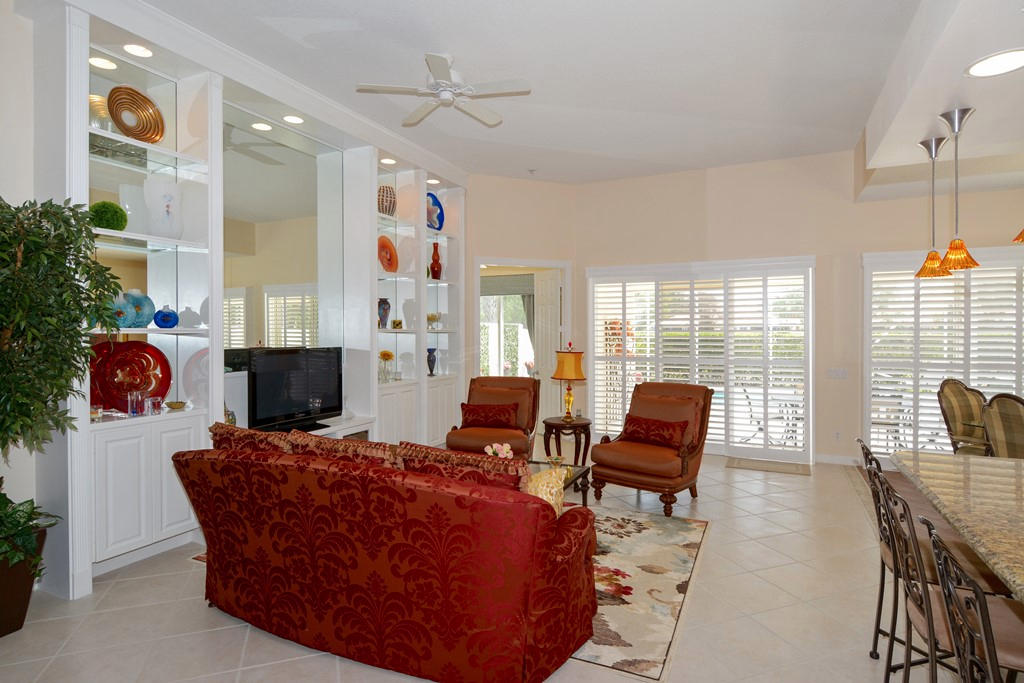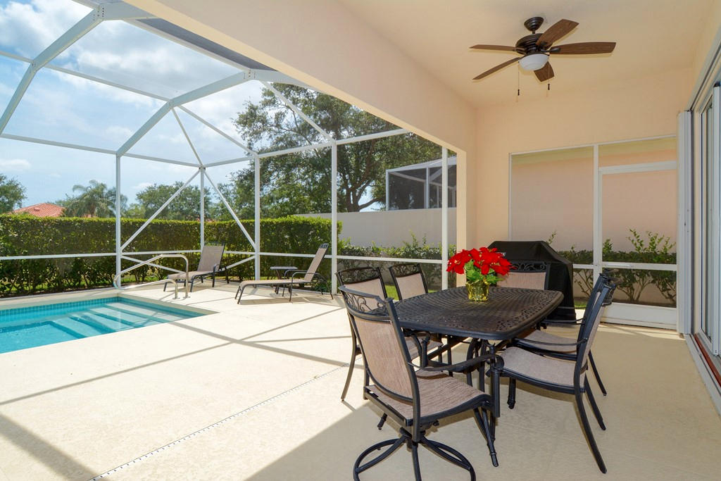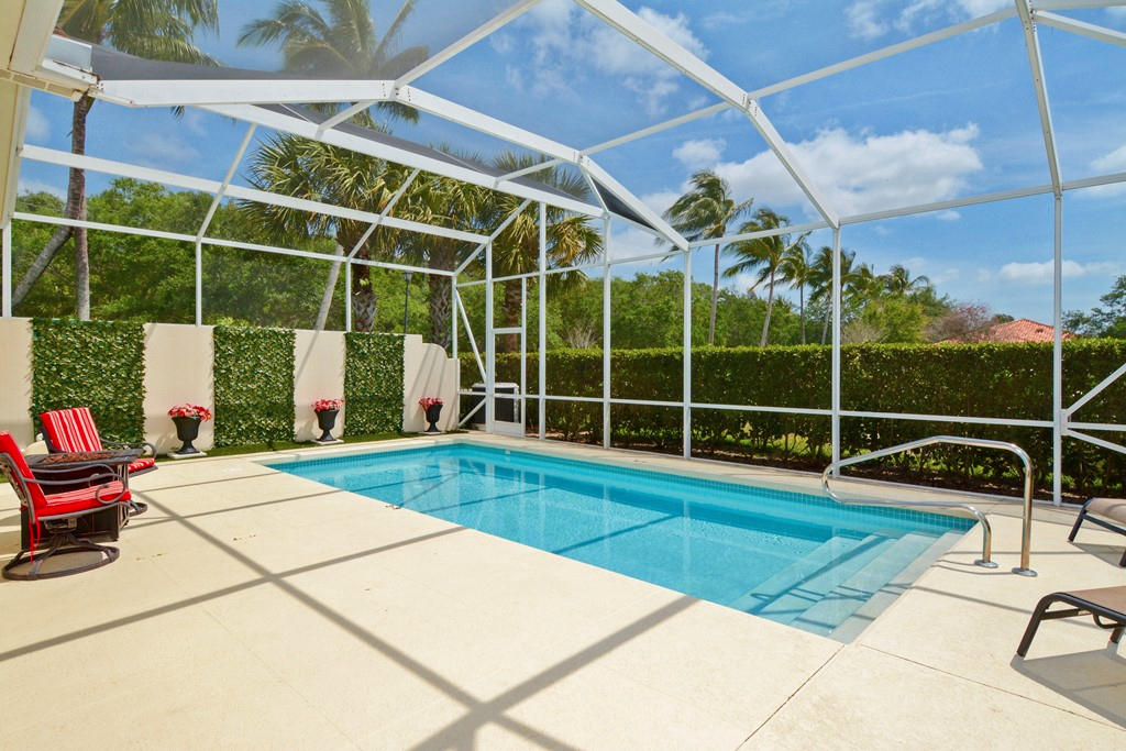 This Pristine Oakmont Model has A Caged Swimming Pool & has been Stylishly Updated with a Unique Flair in Desirable RiverWalk, A 24 Hour Manned Gated Community in One of the Most Convenient Locations in Palm Beach County! This Lakeside Gem has Highend Professional Interior Decorator Upgrades & Stunning Features that make this Residence a One-Of-A-Kind Opportunity! The Lush Landscaped Grounds enhance the Motor Court that leads to the Screened Entry that opens to the Foyer & The Great Room with 12 Ft. Ceilings, an Upgraded Full Wall Entertainment Center ready for a Flat Screen T.V. both with 16'' Porcelain Tile on the Diagonal that transitions with a Decorative Tile Border into the Designer Faux Wood Plank Style Porcelain Tile on the Diagonal Dining Area with a Stunning Designer Fixture,