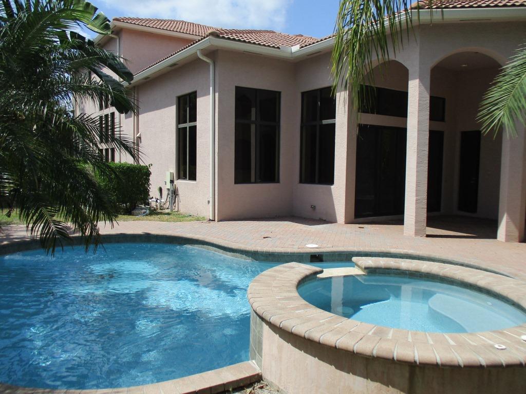 Step into elegance with this 5 bedroom, 4 full, 2 half bath pool home complete with study and loft! A grand spiral staircase at the entry, and soaring 2 story ceilings give a feeling of true sophistication. The private backyard features an outdoor grill, Koi pond, pool and spa. The first floor master suite has coffered ceilings, his and her custom wood accented California closets, and leads out to the pool. Travertine and marble floors throughout the first floor and a gourmet kitchen perfect for entertaining!