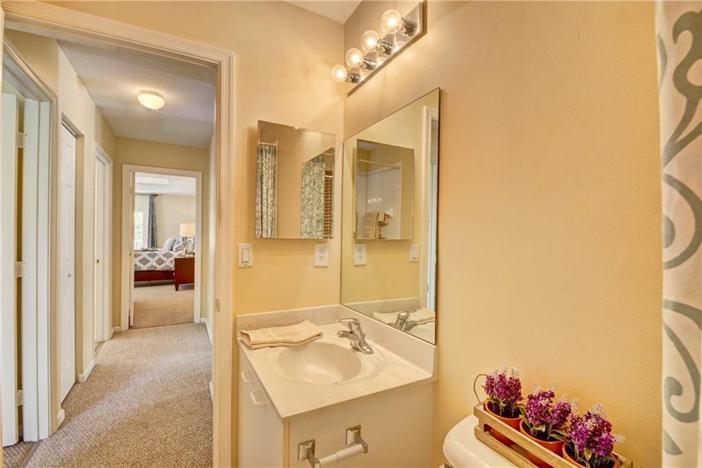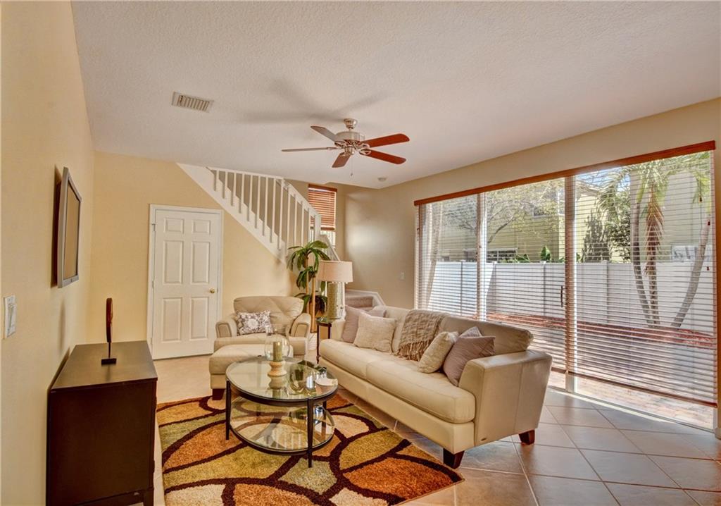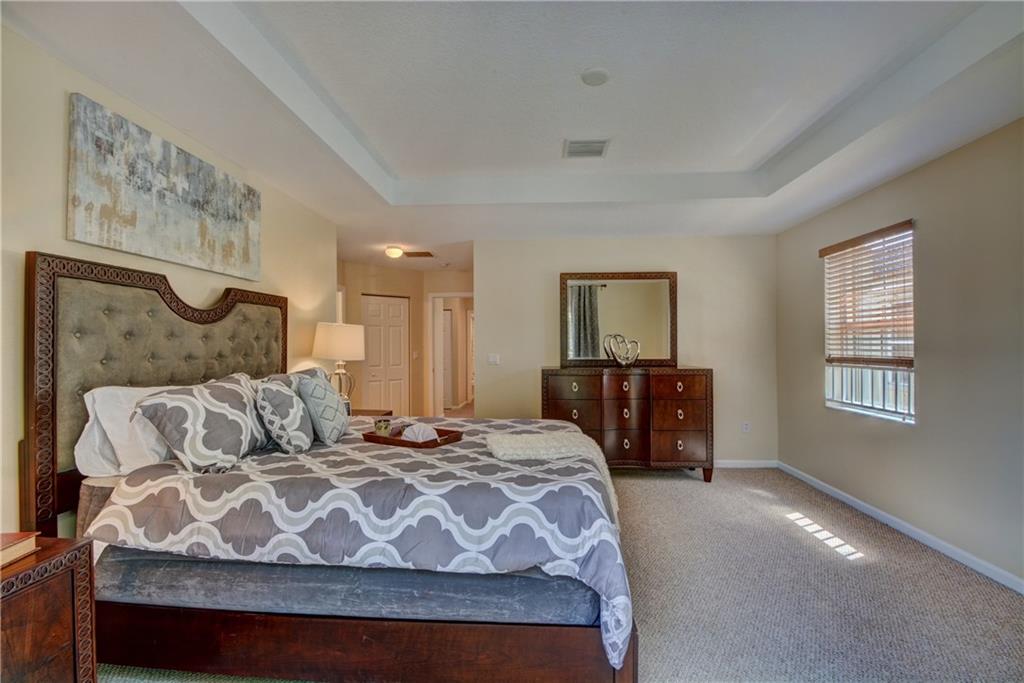 This 2 story, 4/2.5 home features an open kitchen w/granite counters & SS appliances, washer/dryer hook up, new carpet in loft & stairs, downstairs tile on the diagonal, fenced yard and accordion shutters. The oversized master bedroom boasts a tray ceiling, huge walk in closet built out California style, French doors leading out to balcony and the master bathroom boasts separate tub & shower and His & Her sinks w/vanity. The 4th room is the loft w/closet that can be converted back to the 4th bedroom.