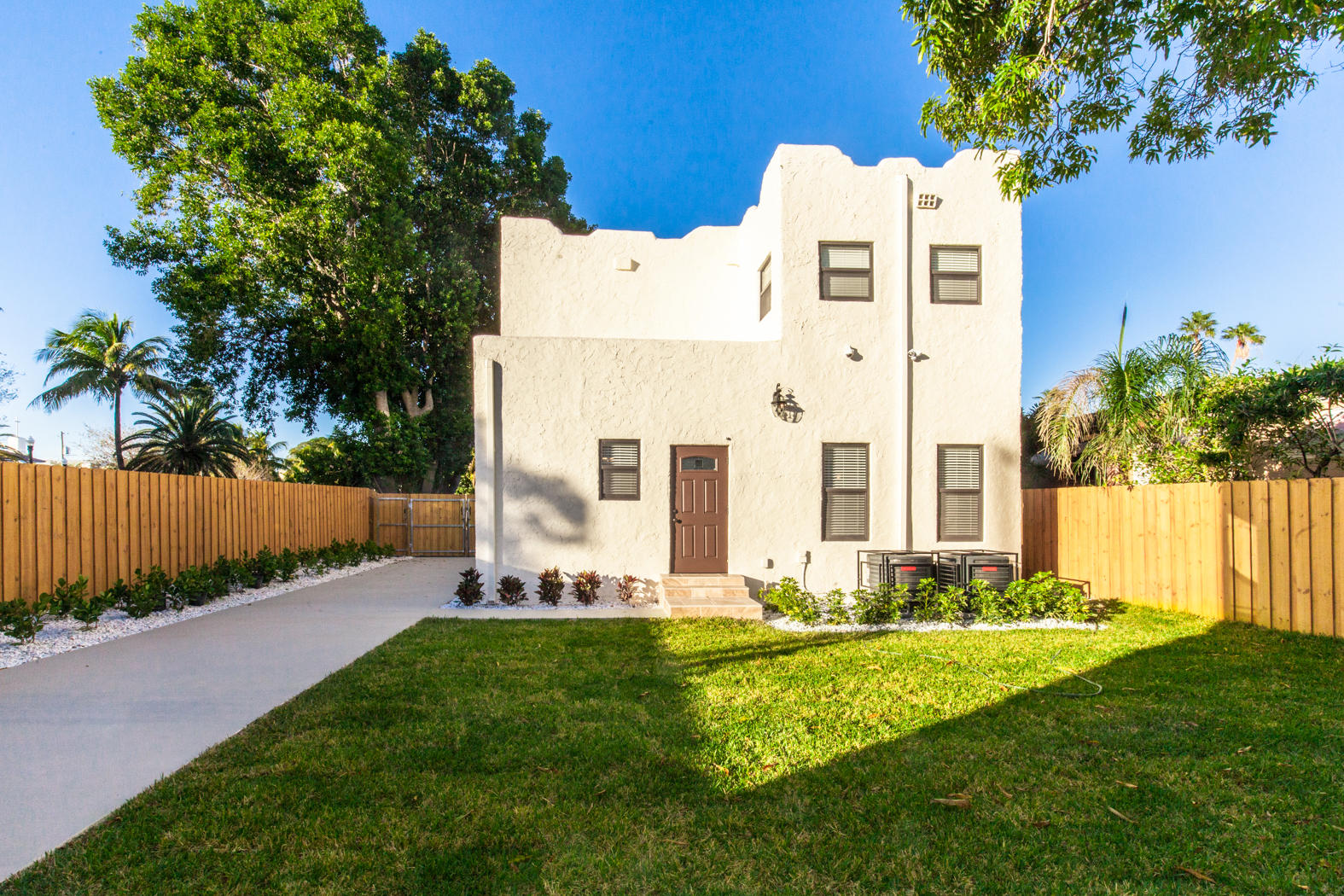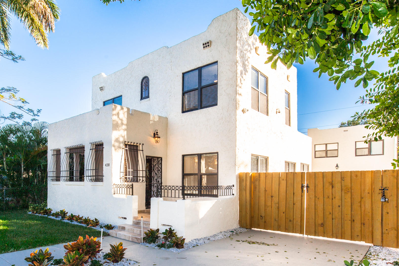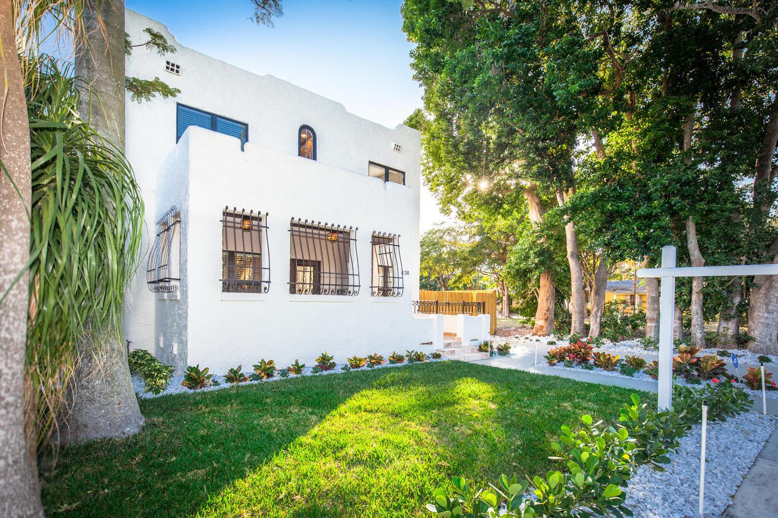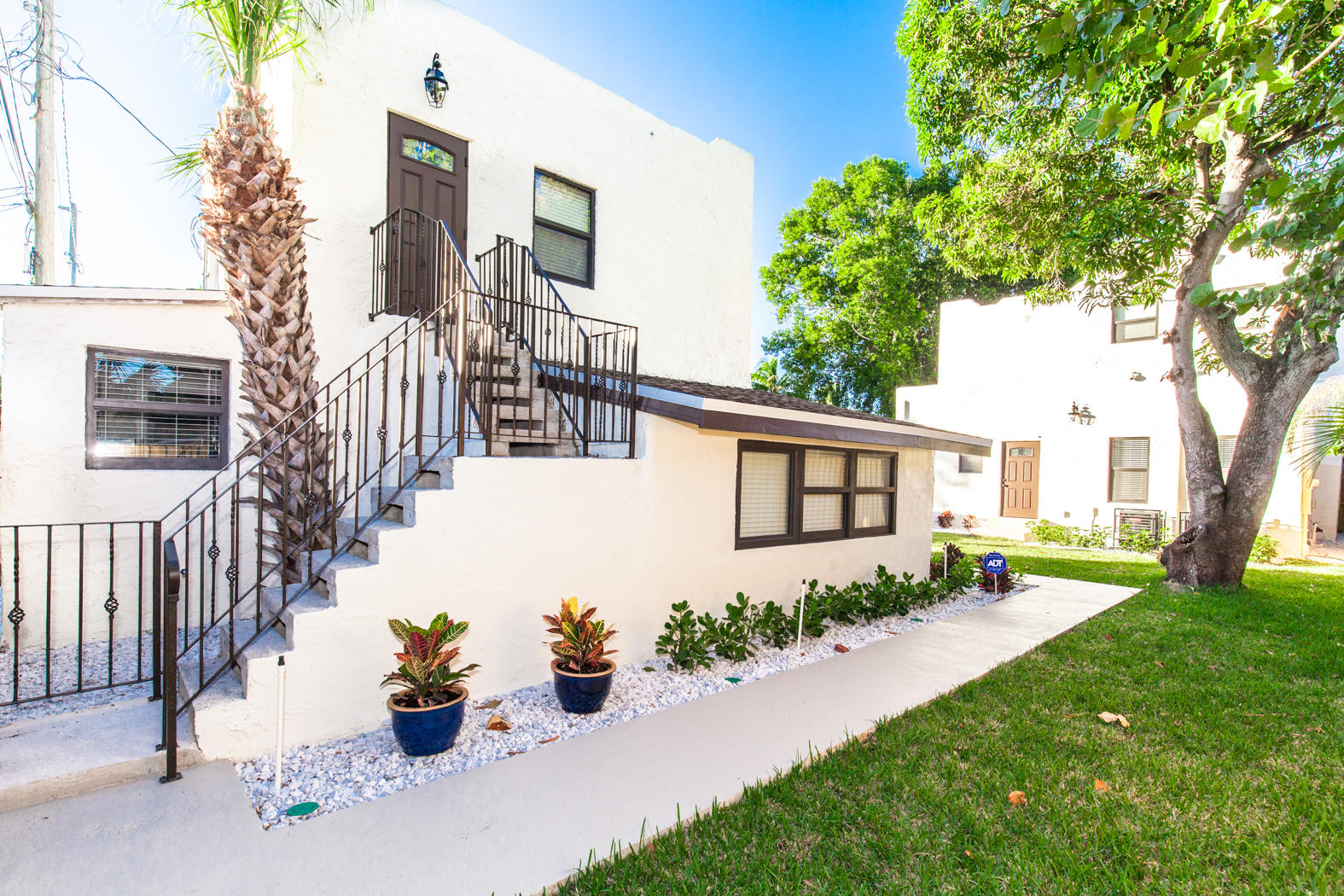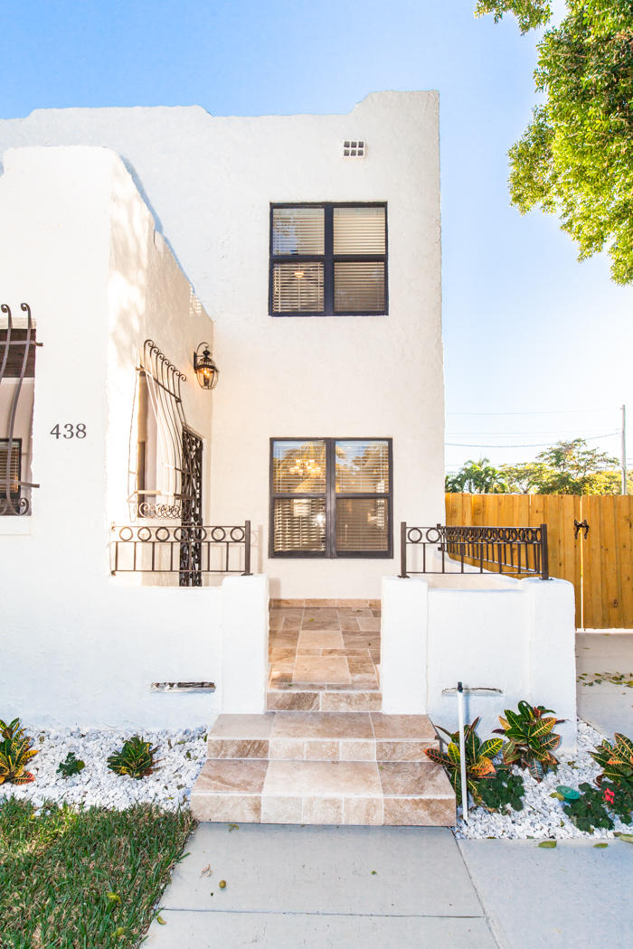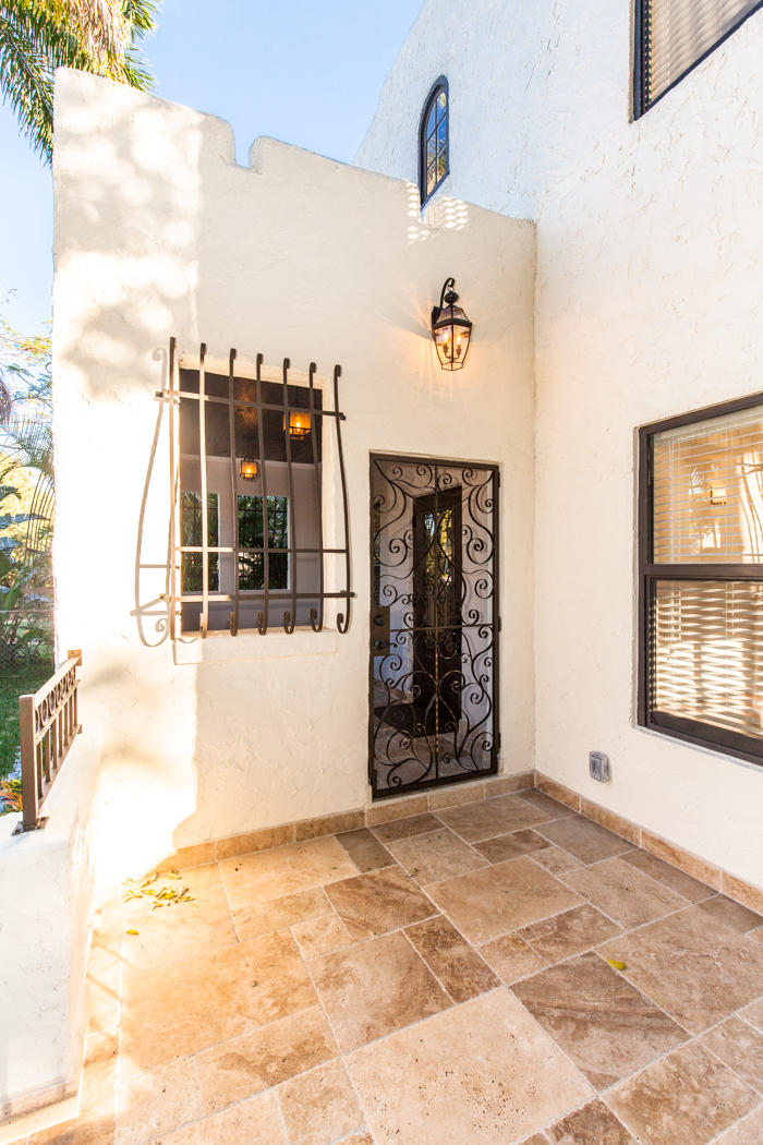 Stunning renovation of a historical property! Main House with travertine front porch, 3 bedrooms, 2 1/2 baths plus den, decorative fireplace, large dining room, beautiful kitchen with granite countertops and Viking appliances, second floor laundry. All new AC, roof, stucco, electrical, plumbing, impact windows, engineeredhardwood flooring and triple master shower. Detached second building includes 2 completely finished one bedroom/one bath mother-in-law suites and/or office. Beautifully finished with wood tile floors, granite countertops, floor to ceiling tile finished bathrooms. Washer/Dryer hookup in the one car garage. Beautifully landscaped with zoned sprinkler system and equipped with ADT system.