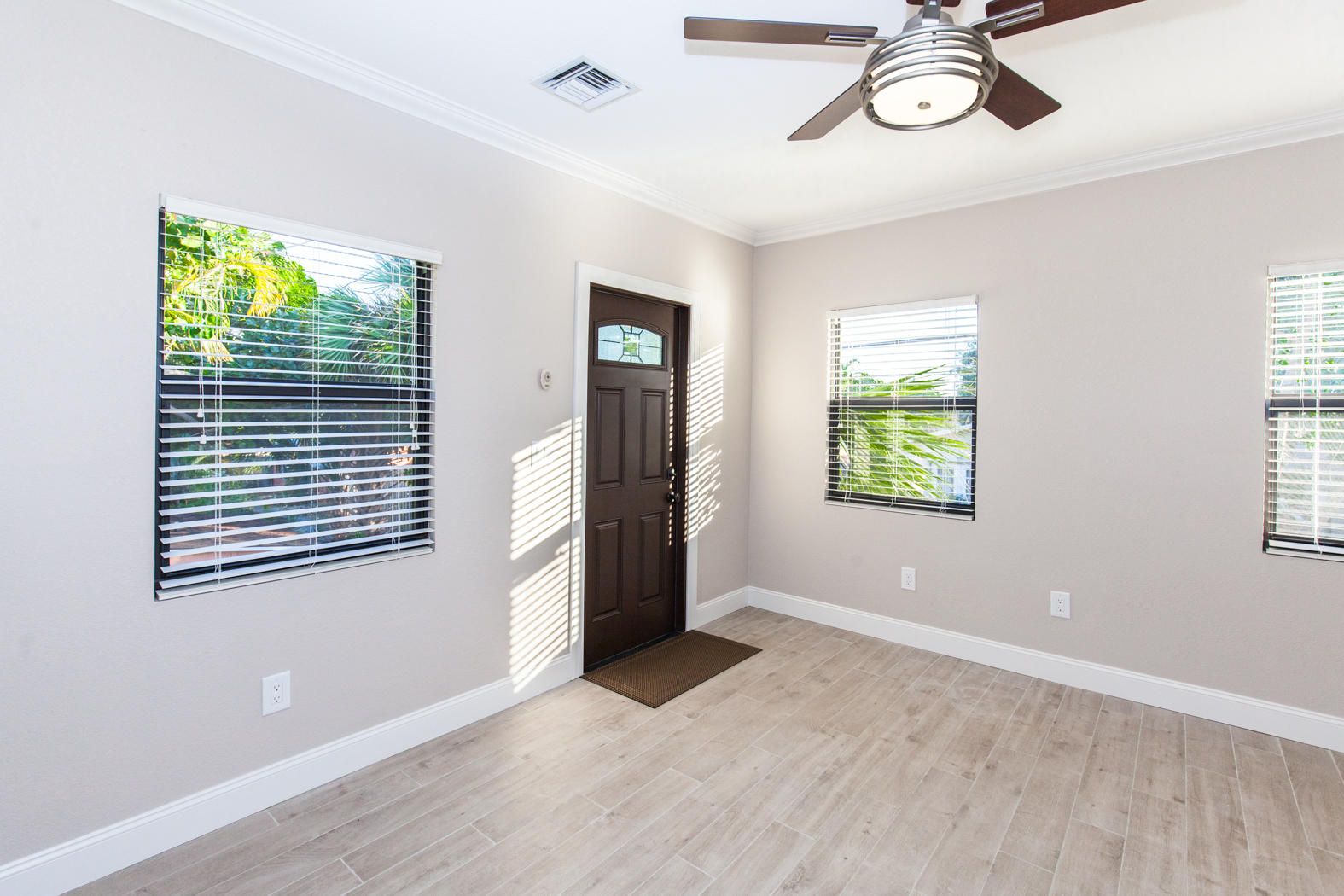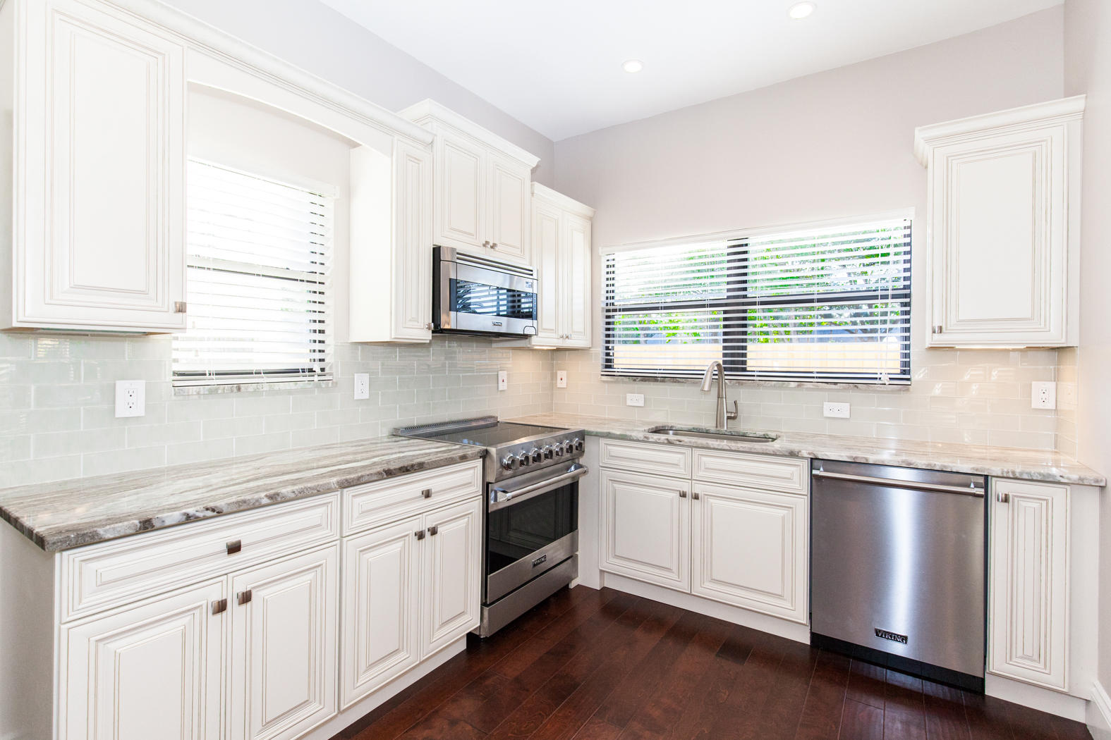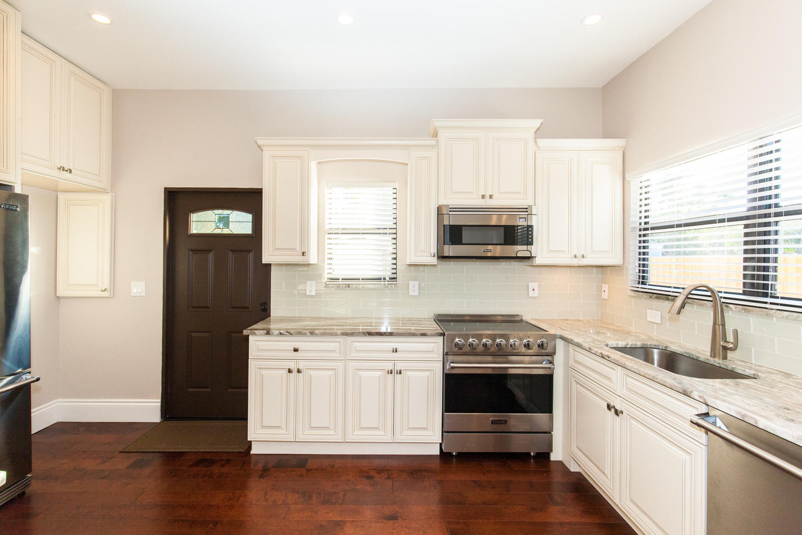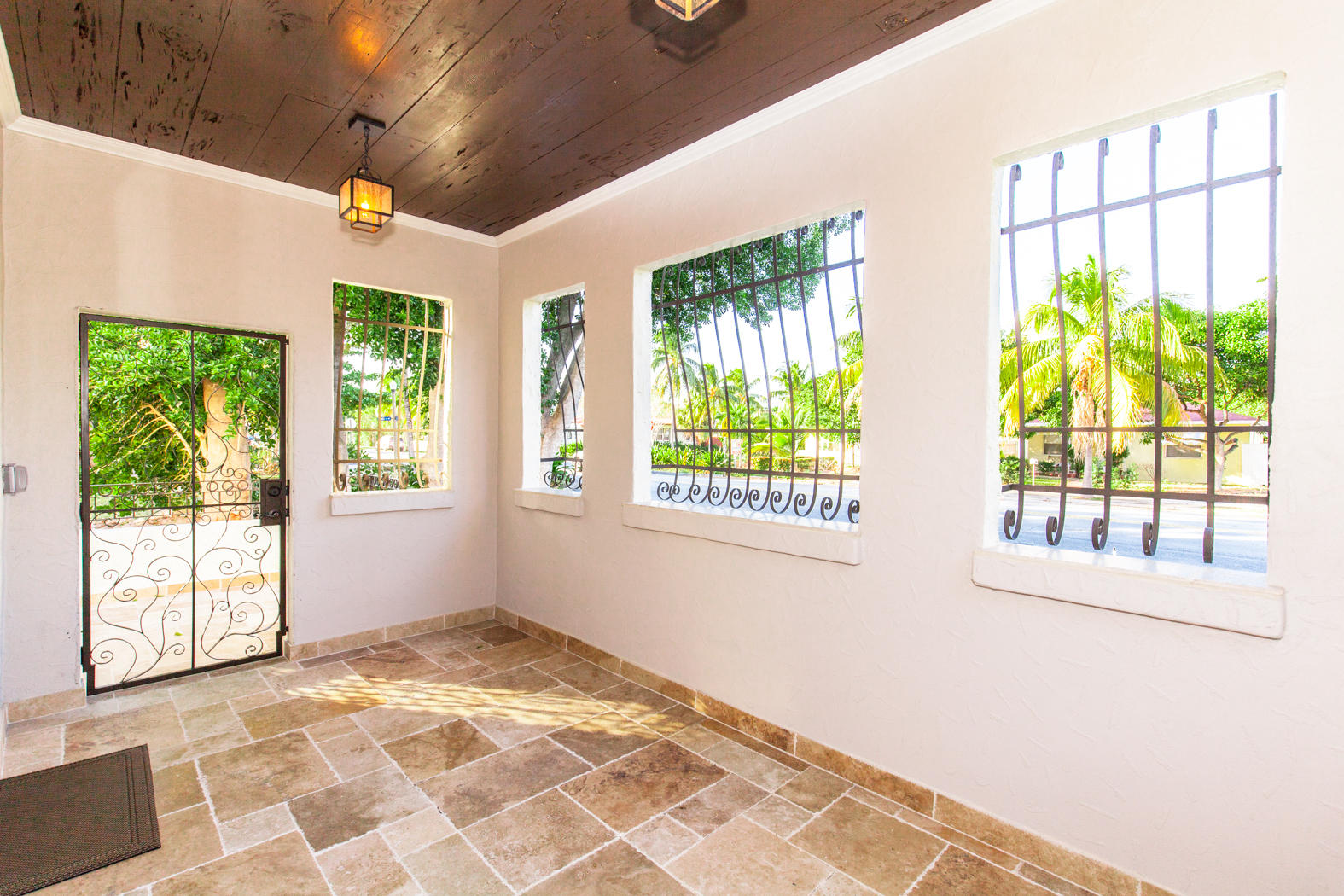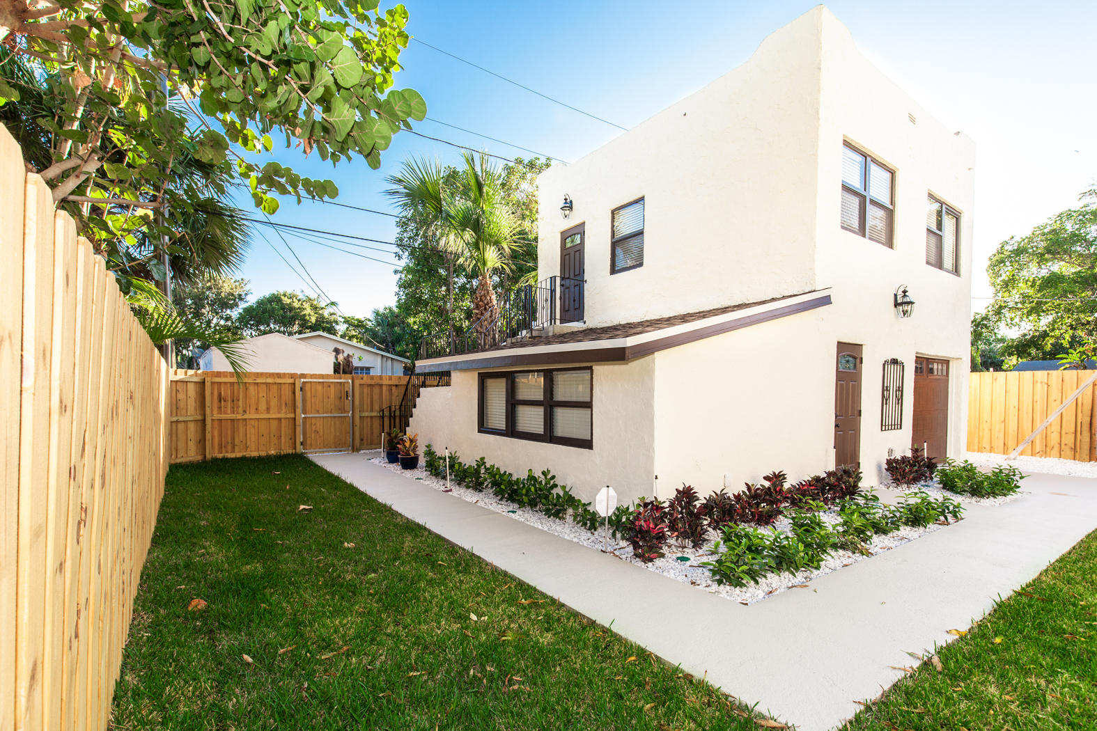 Stunning renovation of a historical property! Main House with travertine front porch, 3 bedrooms, 2 1/2 baths plus den, decorative fireplace, large dining room, beautiful kitchen with granite countertops and Viking appliances, second floor laundry. All new AC, roof, stucco, electrical, plumbing, impact windows, engineeredhardwood flooring and triple master shower. Detached second building includes 2 completely finished one bedroom/one bath mother-in-law suites and/or office. Beautifully finished with wood tile floors, granite countertops, floor to ceiling tile finished bathrooms. Washer/Dryer hookup in the one car garage. Beautifully landscaped with zoned sprinkler system and equipped with ADT system.