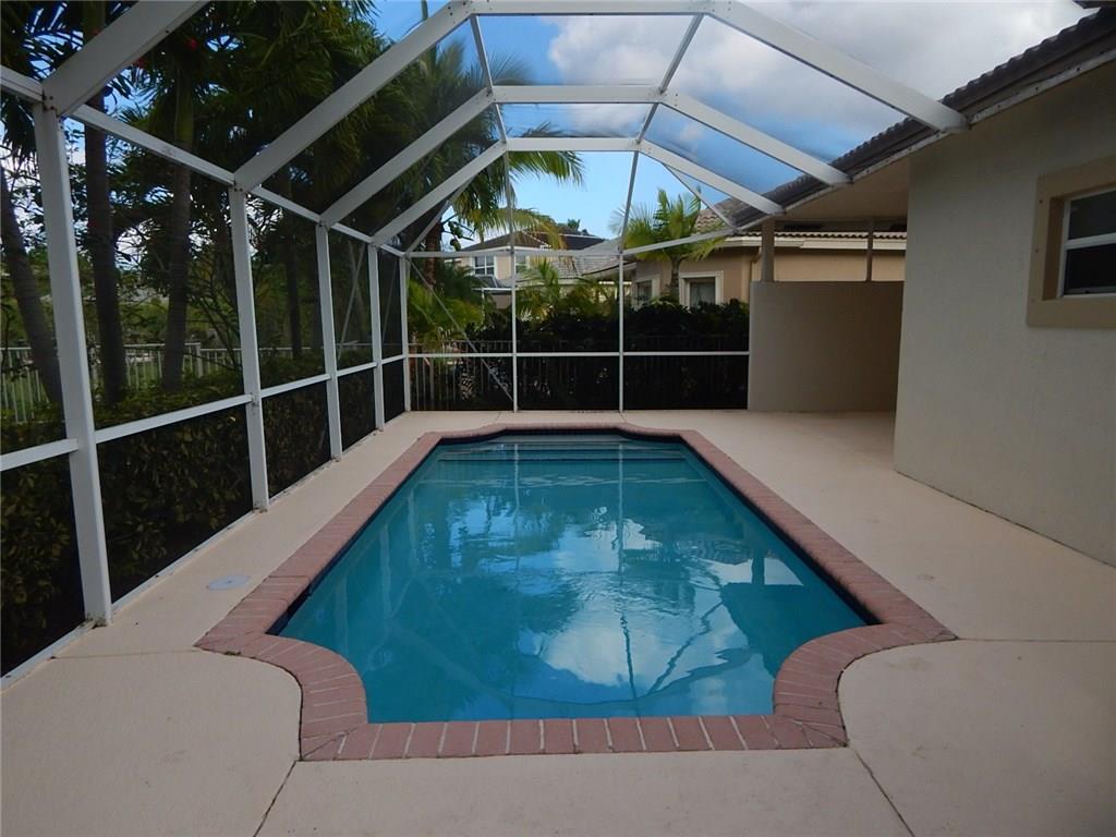 Located in a gated community in Pelican Trail West this 4 bedroom 2.5 bath pool home features living room dining room combination with separate family room off kitchen. Open floor plan with vaulted ceilings, neutral tile floors in living areas. New A/C freshly painted in & out. Spacious bedrooms with new carpets, master bedroom with tray ceilings & 2 walk-in closets. Master Bathroom with dual sinks, roman tub & separate shower. Beautiful screened patio with pool.