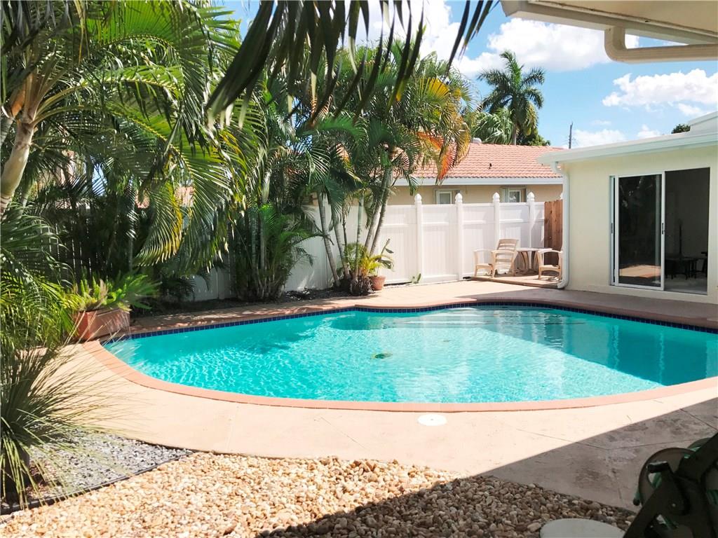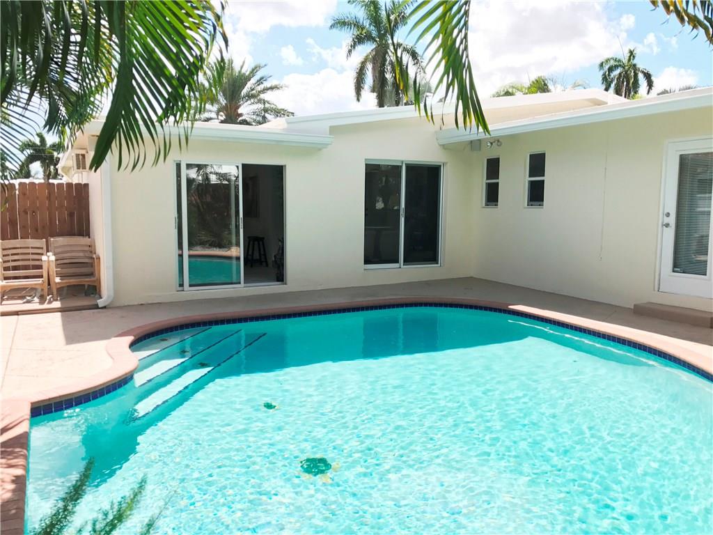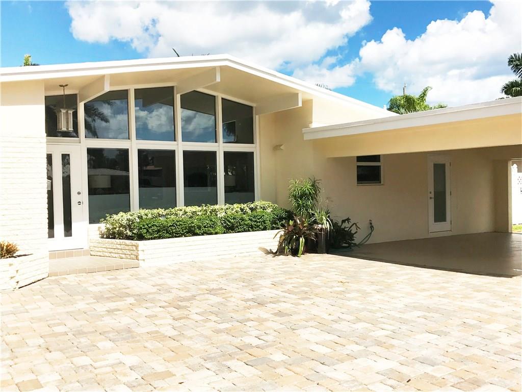 MID CENTURY MODERN across the street from deep water homes A MUST SEE! Completely renovated, bright 3/2 with den pool home featuring Impact windows, 24x24 porcelain tiles, NEW kitchen, open floor plan with build-ins in living room & guest bedroom. Private fenced backyard, New electrical panel & wiring, Pool pump 1 yr old, large paver circle driveway with 2 car carport, beautifully landscaped. Great location near beach, golf, restaurants, shopping, LA Fitness, Whole Foods, less than 30 min. to FLL Airport