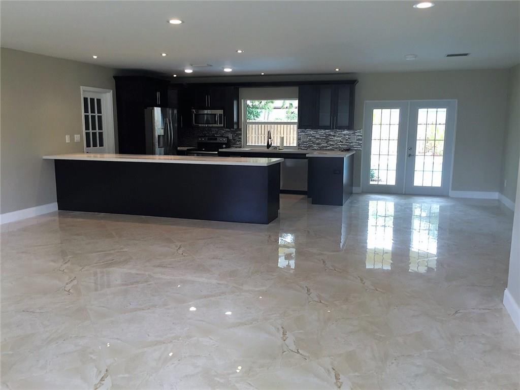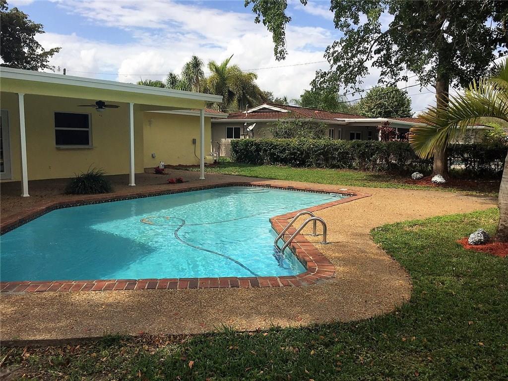 What was once a lump of coal now a POLISHED DIAMOND! Magnificent 3 bdrm 2 1/2 bth completely remodeled home is a must see & packed w/ "Wow" features. Be amazed w/ the huge great room w/ views of the large backyard & pool. New roof w/ 50 yr warranty, new A/C, new impact window & doors, new bthrms, w/ cabana bath.Kitchen is huge w/ stainless steel appl., quartz counter tops w/ a color coordinated back splash. Mstr bdrm is dble in size w/ a gigantic shower w/multiple rain & spray jets w/ french door to pool.