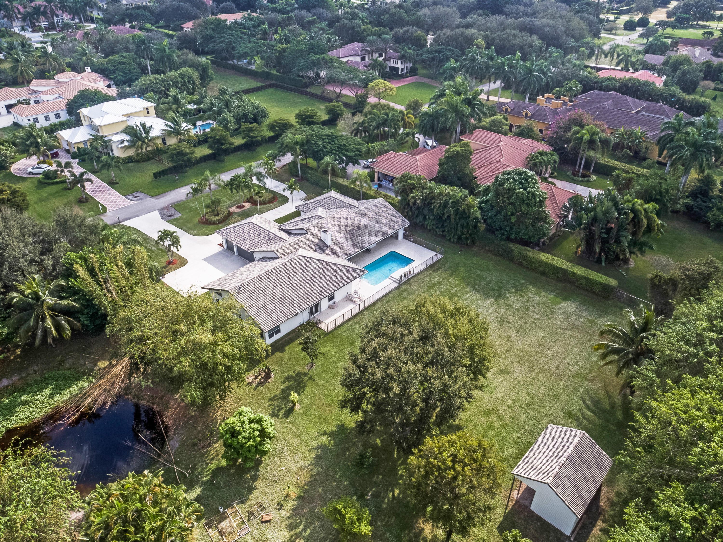 BEAUTIFUL PREMIUM LOT PROPERTY - LOCATED ON 1 ACRE OF PRIVATE LAND IN ONE OF BOCA RATON'S MORE SECLUDED ACREAGE COMMUNITIES. THIS WONDERFUL PRIVATE PROPERTY BOASTS AN OPEN AND SPACIOUS SINGLE STORY FLOOR PLAN WITH AN ABUNDANCE OF NATURAL LIGHTING AND WOOD BURNING FIREPLACE. IN ADDITION, THIS FAMILY ORIENTED CUSTOM ESTATE OFFERS 5 BEDROOMS,4 BATHS,DEN,HEATED POOL AND AN OVER SIZED 3 CAR GARAGE. ADDITIONAL A MOTHER IN LAW SUITE OR HOBBY ROOM , GAME ROOM PLUS A SEPARATE GUEST SUITE.A FORMER BARN THAT CAN BE UTILIZED FOR HORSES OR STORAGE. THERE ARE HURRICANE IMPACT GLASS WINDOWS,ACCORDION SHUTTERS FOR SLIDING DOORS, 15KW GENERATOR PLUS CENTRAL VAC.''ROOM FOR TENNIS COURTS/BASKETBALL COURT''. Close to shopping, A Rated Schools, Prestigious Private Schools, Beaches