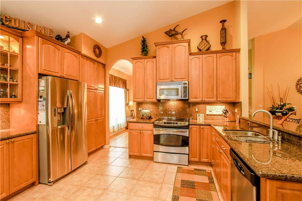 Gorgeous lake front home in a guard gated community. Spectacular one story home with remodeled gourmet kitchen with real wood cabinetry, granite countertops, and ss appliances. Master has great lake views, two large walk in closets, and tile floors. Master bath is completely remodeled with a large frameless shower, granite counter tops, new cabinetry, lighting etc. Second bath also remodeled with new cabinetry, glass sink bowl, faucet, etc. Lush landscaping, accordion shutters and so much more!