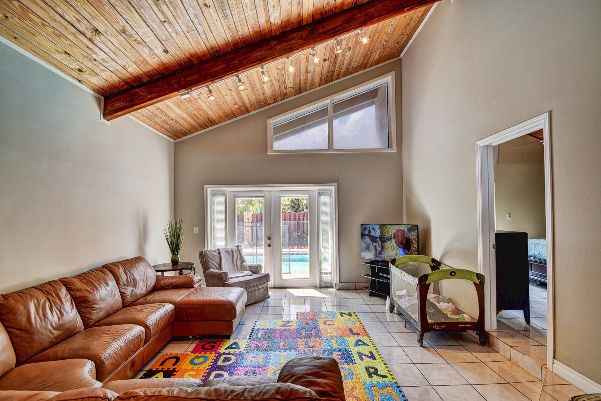 3 Bedroom/2 Baths/2 car garage/pool home,w/living room,+separate office+ separate family room, & interior laundry room. Vaulted ceilings & tile floors throughout. French doors from master bedroom, family room & living room lead to patio & pool. The property is situated on a corner lot & has great curb appeal w/a gated entry & fully fenced in backyard. Kitchen has new SS appliances, new sink & tons of counter space. New roof(2013)/New electrical panel/New hot water heater/Freshly painted/New concrete decking area around pool/New landscaping/Located in central Boca Raton & is close to the YMCA, great shopping, dining, major highways & top rated schools. Pet friendly community. Hoa fee is only $27 a month. Office has no closet but has window & door & could be bedroom#4.