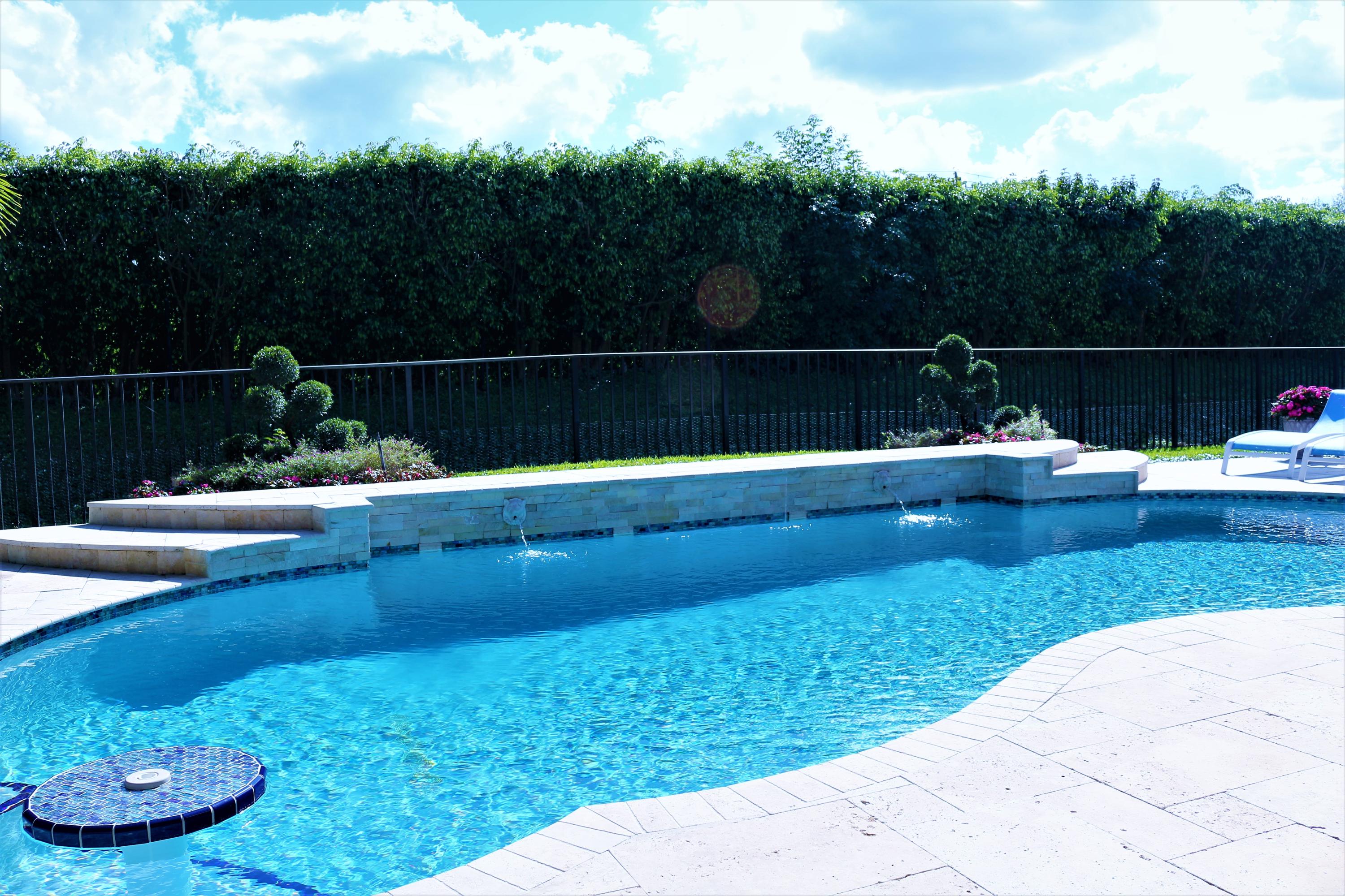 Outstanding, Lite, bright & spacious. Exceptional home in the Wonderful community of Boca Isles South has only the finest of details with up-grades throughout. Etched glass doors, open floor plan, volume ceilings, crown moldings and oversized ceramic tile flooring compliments the neutral decor. The Formal Living room, Family room and Breakfast area lead out to a covered patio w/ an outdoor kitchen area. A new salt system pool w/stage pump for energy efficiency, features a waterfall & entertainment section w/ color changing night lights & travertine deck. Split floor plan on 1st level. Master suite has tray ceiling, his & her closets, Jacuzzi tub, separate shower. Kitchen has been redone with ceramic backsplash. Second floor balcony features etched glass inserts, laminate wood flooring