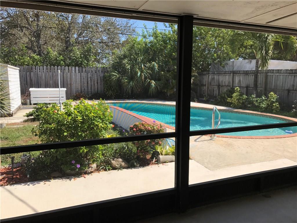 Large family home...3 bedrms....3 baths..family room and airy screened porch. Oversized eat-in kitchen with full dining area. Lots of cabinets and counter space. Interior utilityroom and 1 car garage. Beautiful, tropical pool patio, fully fenced yard. Large outside storage shed. Walking distance to major shops and restaurants. No car needed. Excellent elementary school, also in walking distance. House has been upgraded and well kept. "AS IS" subject to inspection.