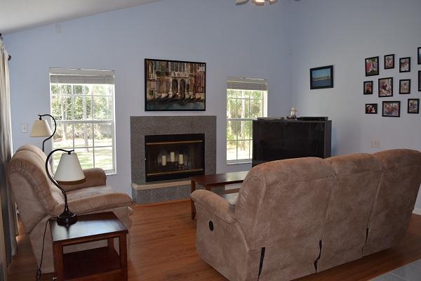 Relax and enjoy the screen enclosed pool patio sanctuary with no neighbors in sight on this 1.15 acre lot. Open the four sliding glass doors to hear the spa waterfall into the pool throughout the living areas and master. This split floor plan home has open living areas with 14-foot vaulted ceilings. Formal living and dining rooms flow into the kitchen with a breakfast nook and large granite counter with room to seat four. Enjoy cool nights by the family room's wood-burning fireplace. Master suite boasts his and hers walk-in closets, separate shower and jetted tub, and dual vanities. Second bedroom has large bay window area overlooking the shady back yard. New energy efficient A/C in 2010. New roof in 2011. Pool resurfaced irrigation system updated in 2013.