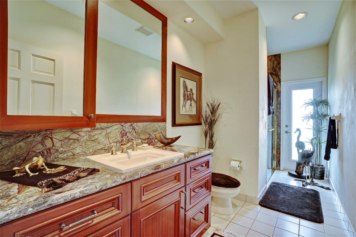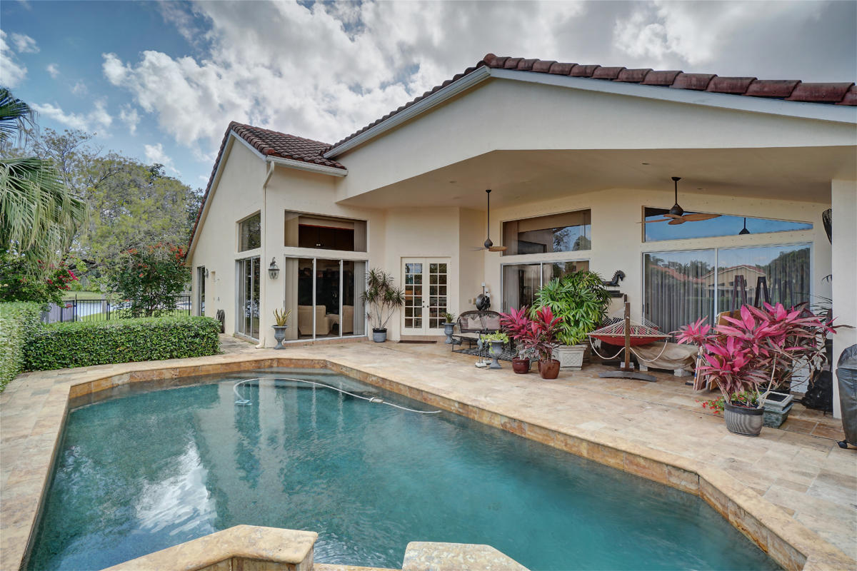 Beautiful 5 Bedroom 3 Bath Lakefront pool home. Three-way split floor plan. Bathrooms renovated with wood cabinets, finishes and granite including the showers. Roof has been replace. Pool area has stunning cut stone decking and the pool has the new lagoon finish all overlooking the beautiful lake. Spacious, airy, immaculate. HOA includes high speed fiber-optic internet service, cable TV, 24 hr manned gate. Sports complex has 8 har-tru lighted tennis courts, staffed pro-shop, state-of-the-art- fitness center, sauna, indoor basketball/ racquetball courts, ping pong, yoga/ dance studio, yoga classes, heated pool, tot lot and clubhouse for parties, cards, bridge, etc. NO Equity,No DUES. Ready for a quick sale! Great house!