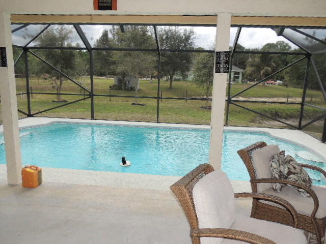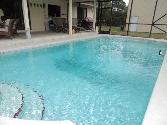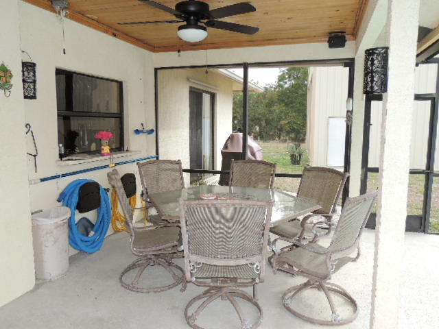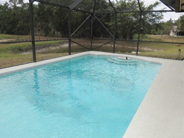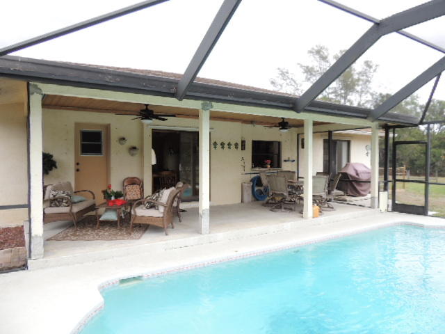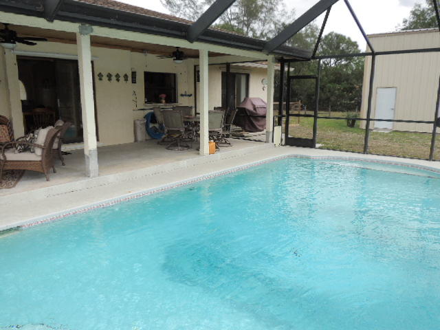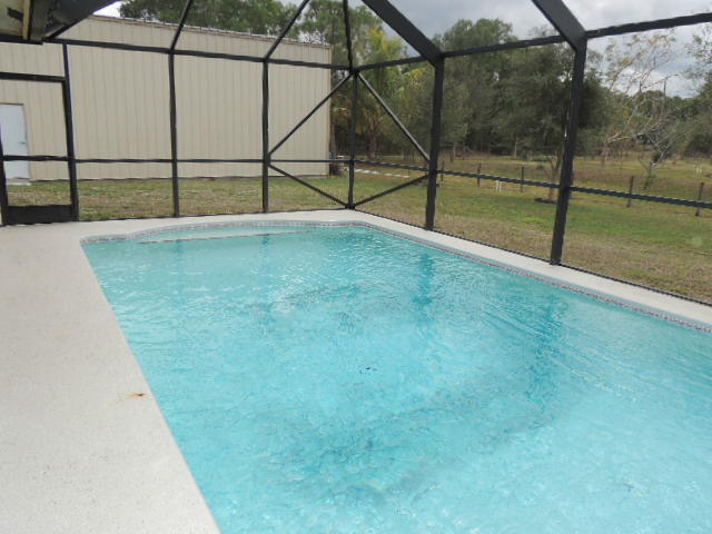 Original owners in this terrific CBS home with pool and HUGE detached garage workshop. Three bedrooms, two baths, two car garage on house, inground screened pool with large covered porch, fenced 1.33ac lot in very private location at the end of a dead end street but still just off Orange and Coconut Blvds for easy commuting either north or south! Detached 1400sf garage / workshop with double overhead doors and room for your boat , rv or home based business with dimensions of 40 x 35. Call today to see!