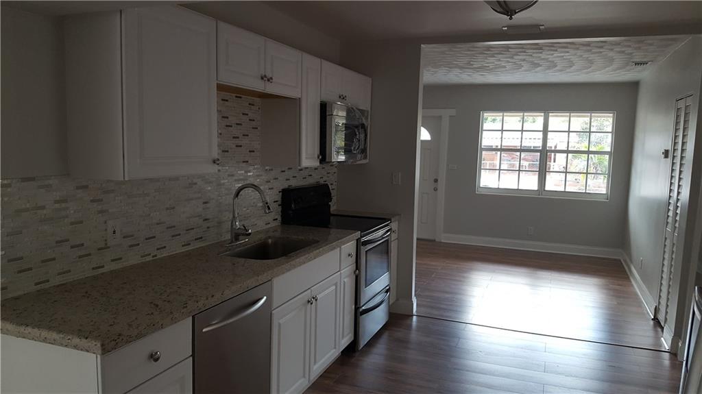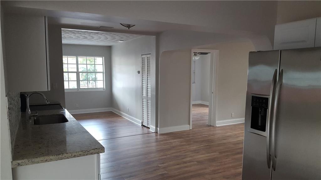 Renovated 4 bed 2 bath Hollywood home. Beautiful brand new large kitchen that opens up to the front living room, dining room & large family room. Master bedroom has private bath w/ large walk-In closet & custom shelving. New wood laminate flooring throughout with the exception of the bathrooms both are tile. New windows, New roof with permit, new A/C and updated electric, separate laundry/utility room that leads to the large backyard complete with a storage shed with electric.
