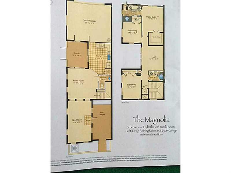 Magnolia model in beautifully designed gated community; clean neat and fully upgraded : 3 bedroom and 2.5 baths with family room, huge loft with wood floor upstairs, living, dining room and 2-car garage. Best Corner unit, private courtyard entry and seco nd courtyard off kitchen. Tile on 1st floor, carpet in bedrooms, stairs/office area have wood. Lots of closet space, big kitchen with full back splash; Granite counter top and wood cabinets. Full of natural light, Great community with many amenities.