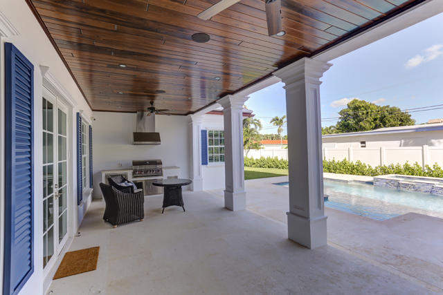 Priced to Sell!! Exceptional new construction home on oversized lot, one block from the Intracoastal Waterway. This 5 Bedroom, 5 Bathroom British Colonial boasts over 5000 sq.ft and features Thermador appliances throughout, 48in. gas range with double ovens, hardwood floors, hurricane impact glass,a luxurious first floor master suite, and two-car garage. The gracious covered loggia with summer kitchen overlooks the gas heated, salt water pool w/Jacuzzi.
