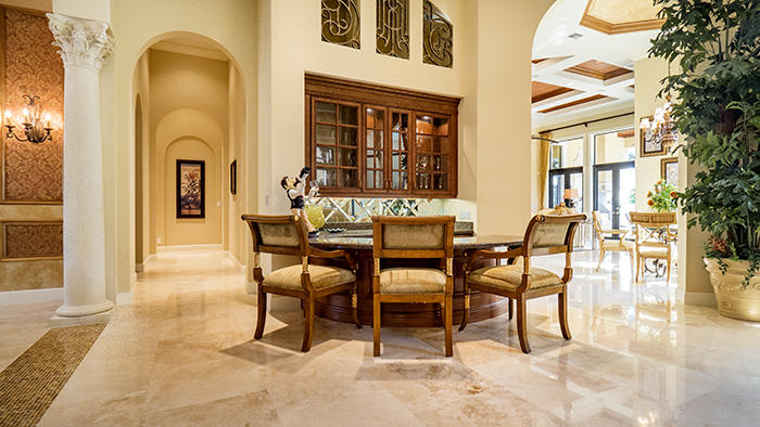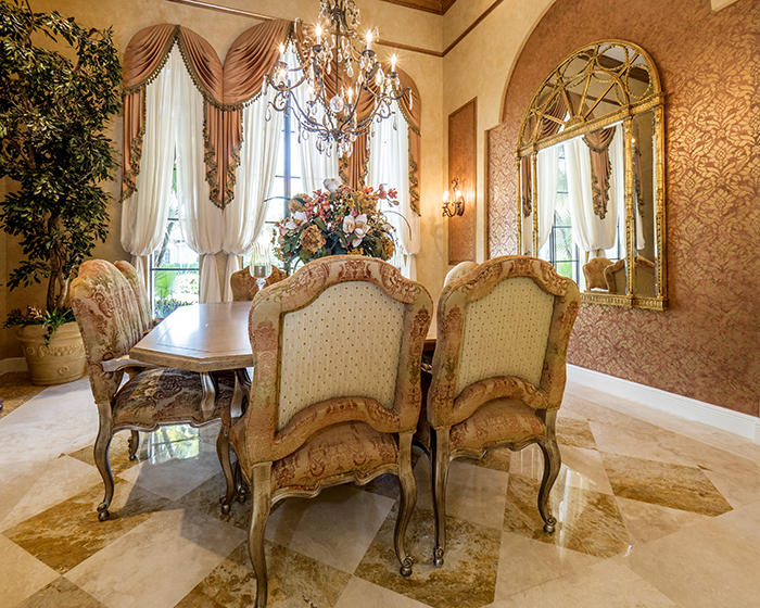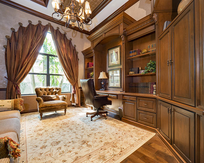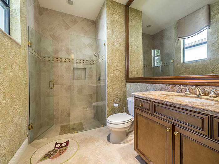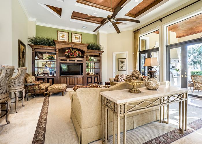 Magnificent custom Southern Homes estate in one of Ibis's finest neighborhoods, overlooking the Tradition golf course. 4BR/4BA + den, designer decorated with exquisite Saturnia marble floors, eloquent crown moldings throughout home. This stately home has new AC system, hurricane impact glass with a circular driveway. Living room with fireplace, custom gourmet kitchen with Thermador appliances, cook's island and wood cabinetry.Custom built ins in family room and spacious dining room with elaborate fixtures. Gorgeous master suite with custom closets, solid wood flooring in bedrooms and den. Stunning covered summer kitchen with heated pool and spa for entertaining. Exquisite outdoor landscaping and new lighting for evening ambience.