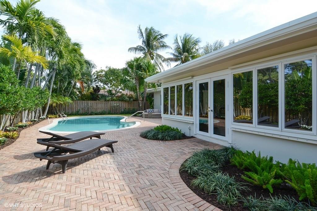 Gracefully and elegantly updated pool home located east of Bayview on superb interior street. Foyer entrance leads to open and inviting floor plan with views to the beautiful pool area with brick-paver surround, expansive patio and retractable awnings. Plenty of room to entertain inside and out! Most windows and doors are impact resistant, tile flooring throughout, updated bathroom. Master bedroom features walk-in closet and completely renovated master bath. Two Car Garage. Nothing to do here but enjoy!