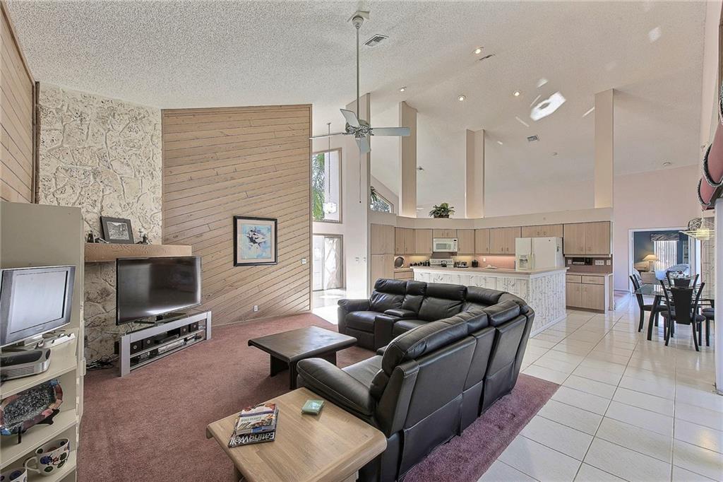 Classic contemporary on waterway in quiet cul de sac of custom homes. Fenced, open pool and 20 ft roofed lanai. Timeless architecture, soaring cathedral & vaulted ceilings, clerestory windows. Triple split bedroom floor plan; every room spacious, Priced below market, impeccably maintained, decorate to your own taste & style. Foyer entry, large formal living room & dining room, big family room, breakfast area overlooks pool & patio. Huge kitchen, cabana bath. Sewing desk in laundry room.