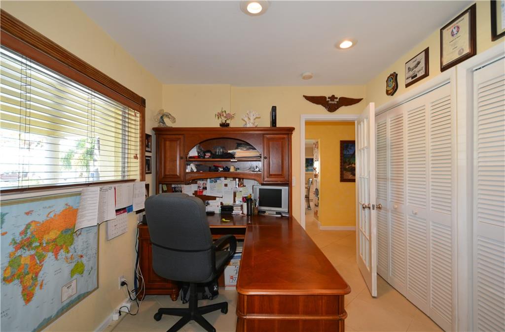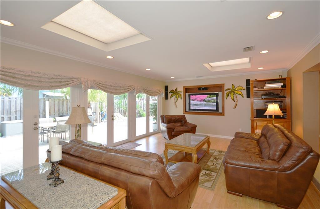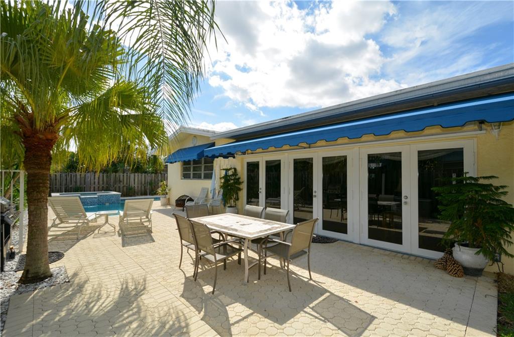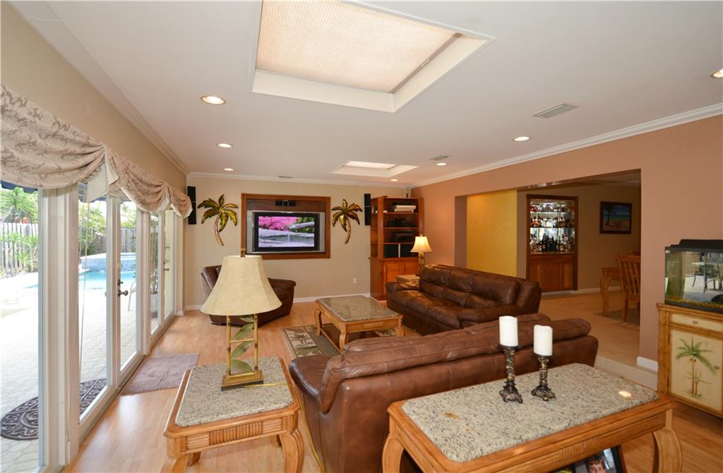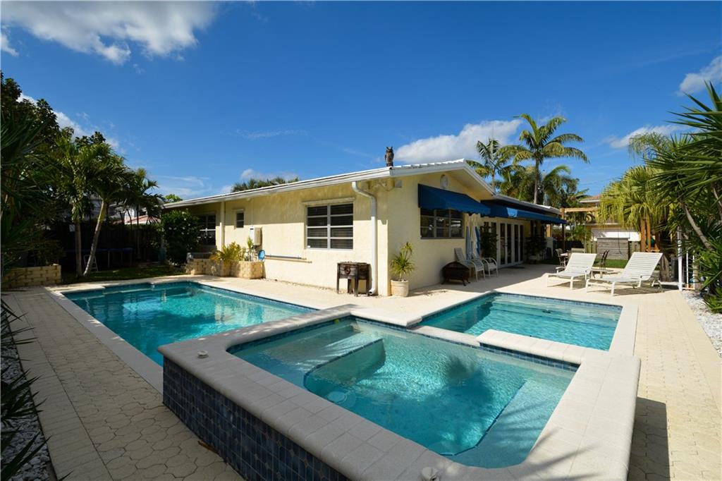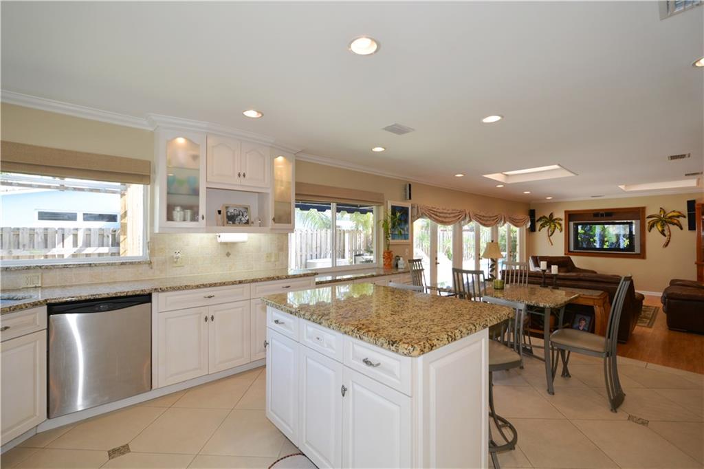 Perfectly renovated thoughout. Open & bright! Lg eat-in chef kitchen open to huge family rm with French doors for morning light & access to the heated pool/Jacuzzi, private fenced in patio area. PLUS U R 1 house from the culdesac & Intracoastal park - unobstructed views of the waterway from kitchen window & front porch! No neighbors behind house! Lg dining rm & wet bar, office. Curb appeal, pavers & location! Possibility of the dry lot next door bordering the Intracoastal Park for sale as well! Ask agent
