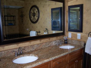 Gorgeous 4/2.5/2 on the lake! Hardwood floors and hardwood stairway with elegant wrought iron railings. Dazzling 2 story custom ceiling treatment in great room, boasting huge chandelier and dramatic theater lights on dimmer! Beautiful new kitchen with 42'' soft close cabinets, SS appliances and rare granite countertops with tumbled marble backsplash! All bathrooms remodeled. Hurricane impact windows and doors for safety and energy efficiency. Huge and private Resort style back yard and inground pool with rock waterfall! Great central WPB location! and low HOA fees! This one of a kind home is a MUST see!