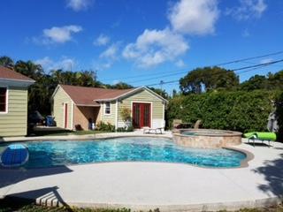 Charming 1940's home blocks from the Intracoastal. Offers formal dining room, original wood floors, wood burning fireplace, volume ceilings and cedar wood closets. All new top of the line stainless appliances and granite counter tops. Beautiful pool with spa. Enormous backyard is completely fenced in with lush landscaping. Singer Island Beach is only 5 minutes away. Guest cottage with one bedroom, large bathroom with tub, living room area and full kitchen. Oversized driveway, perfect to park a boat. Port of Palm Beach is right around the corner. Northwood Village has great restaurants, shops and art galleries.