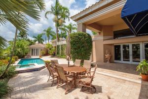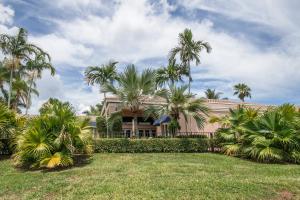 This 1-story courtyard home has golf course & water views from every window! The creamy marble flooring with 24x24 tile set on a diagonal is the perfect back drop for any style of furniture. In addition to the 4 bedrooms, there is an office with French doors & magnificent views. The large kitchen was remodeled in 2000 with custom cabinetry, double ovens & gas cook top. The master bedroom is well appointed with enormous his/her custom closets & wood flooring. The guest house has a kitchenette, wood flooring & French doors that open directly onto the pool area. The pool is surrounded by marble pavers & beautiful landscaping. Other features include: Plantation shutters, heated pool, 6 A/C units replaced approximately 2012, roof replaced in 2011, flat roof replaced in 2015 & a gas generator.