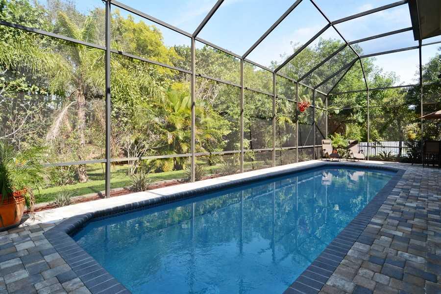AMAZING REMODELED HOME INCLUDING NEW ROOF IN 2015 WITH 12 YEAR WARRANTY, NEW PAINT, KITCHEN WITH WOOD CABINETS, GRANITE COUNTERS, TILE BACKSPLASH AND STAINLESS STEEL APPLIANCES INCLUDING WINE FRIDGE, TILE IN KITCHEN AND DINING ROOM, ENGINEERED DARK WOOD F LOORING IN LIVING ROOM & BEDROOMS, MASTER BATH WITH TUB AND SHOWER AND VANITY WITH GRANITE COUNTERS, 2ND BATH AND 1/2 BATH ALSO UPDATED, SCREENED POOL & LARGE PATIO WITH BRICK PAVERS, ALL THIS AND ON CUL-DE-SAC IN A GATED SUBDIVSION...MUST SEE THIS ONE