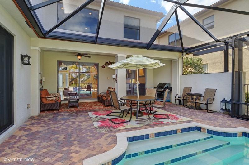 Meticulously-maintained 4-bedroom, 4.1 bath home plus loft with beautiful polished Saturnia marble floors and numerous upgrades! This home is an excellent value for the square footage and upgrades including soaring ceilings, hardwoods in den and partial master, 2013 screened-in lanai, 2013-replaced pool heater, 2013 s/s replaced appliances including refrigerator, microwave and dishwasher, 2013 washer/dryer, newer carpeting, and surround sound throughout. This home offers a bonus of a gated small yard perfect for pets or kids in addition to the large screened-in pool area...perfect for entertaining family and friends and all surrounded by beauty and natural tranquility.
