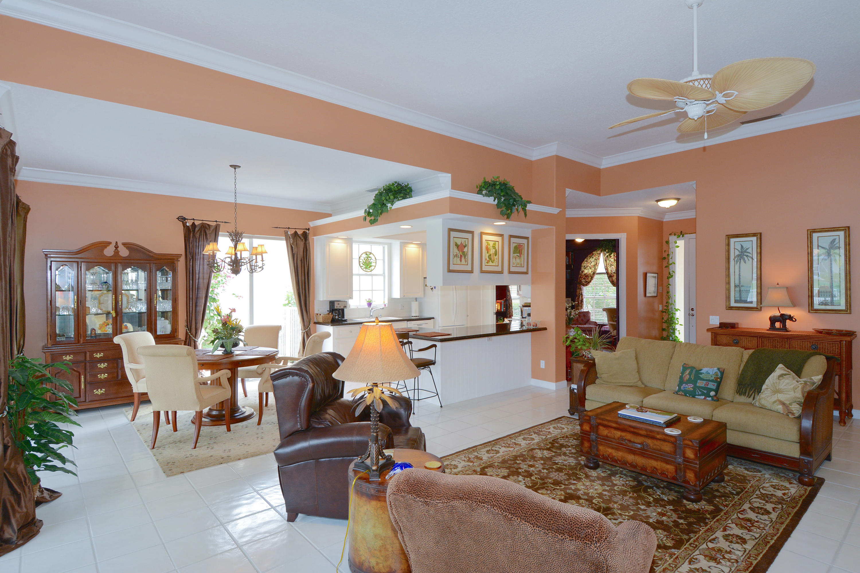 This is Truly a Unique Oakmont Model in RiverWalk! Here's Why! It has a Large Beautifully Landscaped Fenced Lakefront Garden with Manicured Shrubs, Privets, a Paver Walkway with A Gorgeous Arber overlooking the Water! It is Truly One-of-a-Kind! Reminiscent of The Hamptons! And this is just the Beginning! The Covered Entry is Surrounded by Flowering Plants & Tropical Palms & Leads to the Tile Foyer & Great Room both with Crown Moldings, A Full Wall Entertainment Center that has been updated to accommodate a Flat Screen TV, The Tile Dining Area with Crown Moldings & Sliders to a Secluded Patio & there are also 18 Feet of Sliding Glass Doors that lead to a 22 Foot Screened Lanai that overlooks that Exquisite Backyard! The Tile Kitchen, the Hub for Everyday Living or Casual Entertaining has
