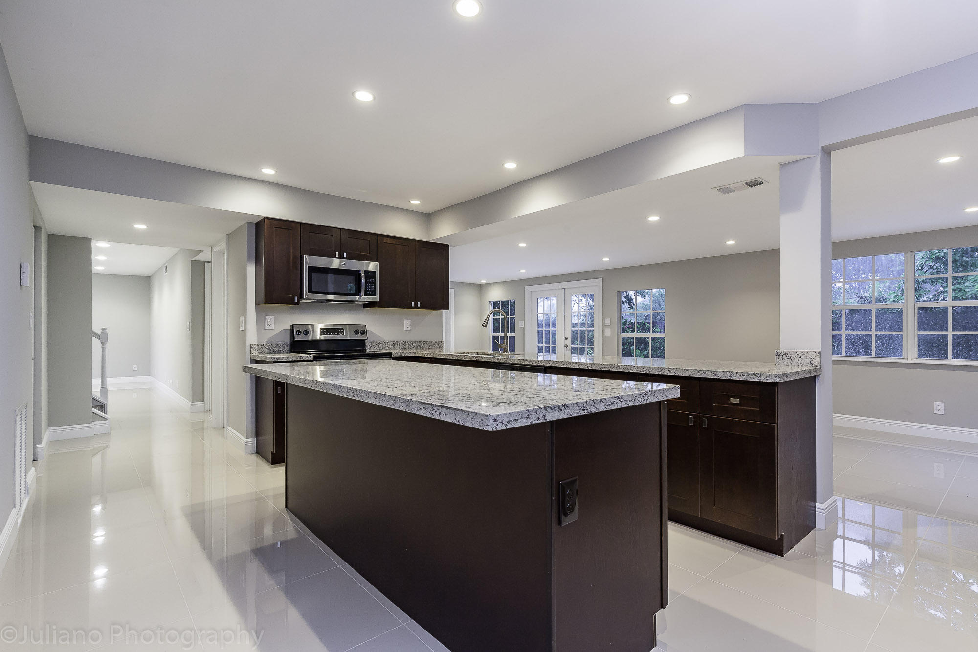 A real move in ready gem in East Boca Raton. Located by US1, very close to Mizner Park. 2 story completely renovated large stunning 2444 sq ft house. Downstairs - brand new flooring, updated bathrooms, new washer and dryer, opened custom built kitchen with brand new GE appliances, custom built cabinets, new granite, house is full of light. Downstairs - 1 bedroom, kitchen, living room, half bath, 1 separate shower, laundry room. Upstairs - 4 bedrooms with new flooring, 2 updated gorgeous bathrooms, master bedroom has a beautiful built in closet. Large fenced 0.18 acre yard with a pool. New landscaping. No HOA.
