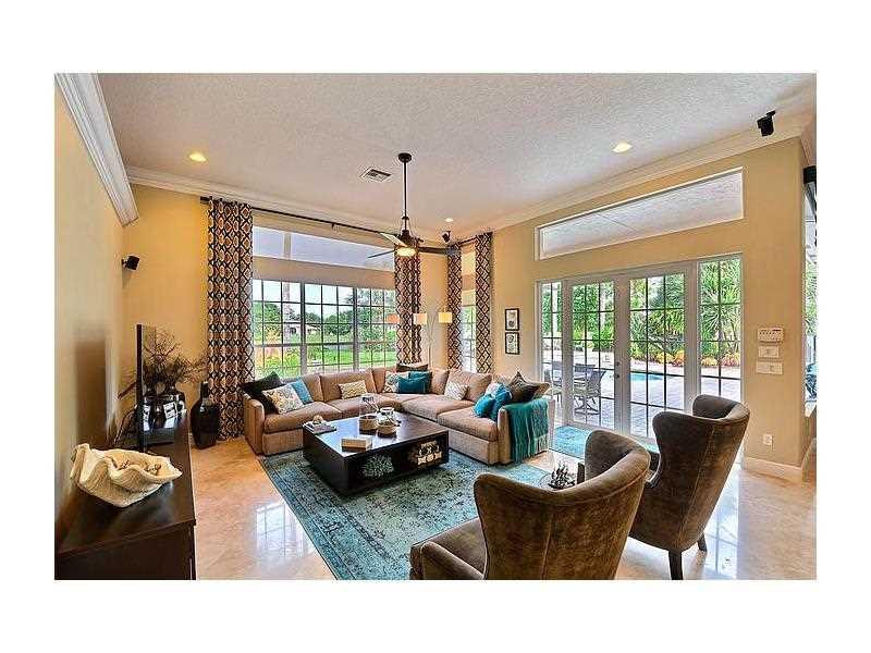 Simply elegant!Beautifully decorated Caliterra model that offers 4150 SF,4 BR,3.5 BA,office,& master suite w/sitting room w/his & her baths.Situated on a builder's acre overlooking lake & most inviting pool & patio area.!Marble floors thruout main LA & ha rdwood floors in all bedrooms!Attention to detail is like no other-Crown moldings,designer window treatments & plantation shutters!Gourmet kitchen w/all new ss appl. Custom wood cabinetry & granite countertops.4th & 5th BR's combined for one large BR.