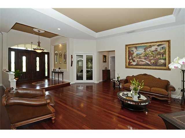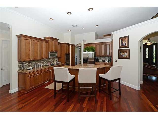 THIS IS A GREAT OPPORTUNITY TO OWN IN THIS PRESTIGIOUS DAVIE COMMUNITY, HOME HAS GORGEOUS REAL CHERRY WOOD FLOORS AND PLANTATION SHUTTERS THROUGHOUT. CUSTOM LIGHTING, GOURMET KITCHEN WITH GRANITE, STAINLESS STEEL AND LARGE CENTER ISLAND. COMPLETELY PRIVAT E BACKYARD WITH OVERSIZED POOL AND HUGE BACKYARD.