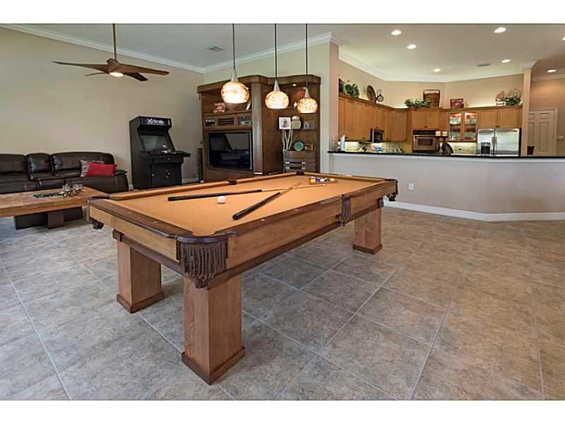 This luxury featured home sits on nearly one acre on a lush landscaped oasis. Magnificent lake views and newly refinished free form pool/hot tub. Extra large covered patio is great for entertaining. Large gourmet kitchen,state of the art security & surrou nd sound system. Over $200K in builder upgrades. All bedrooms with WIC. New AC. New paint interior/exterior. Impressive master retreat. Newly remodeled den & meticulously maintained. If you are looking for luxury in harmony with nature, this is your home.