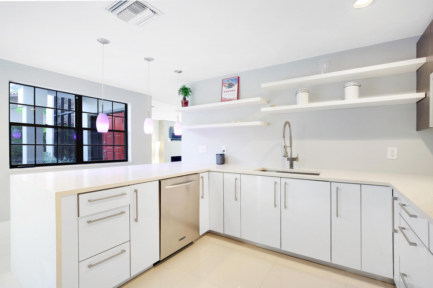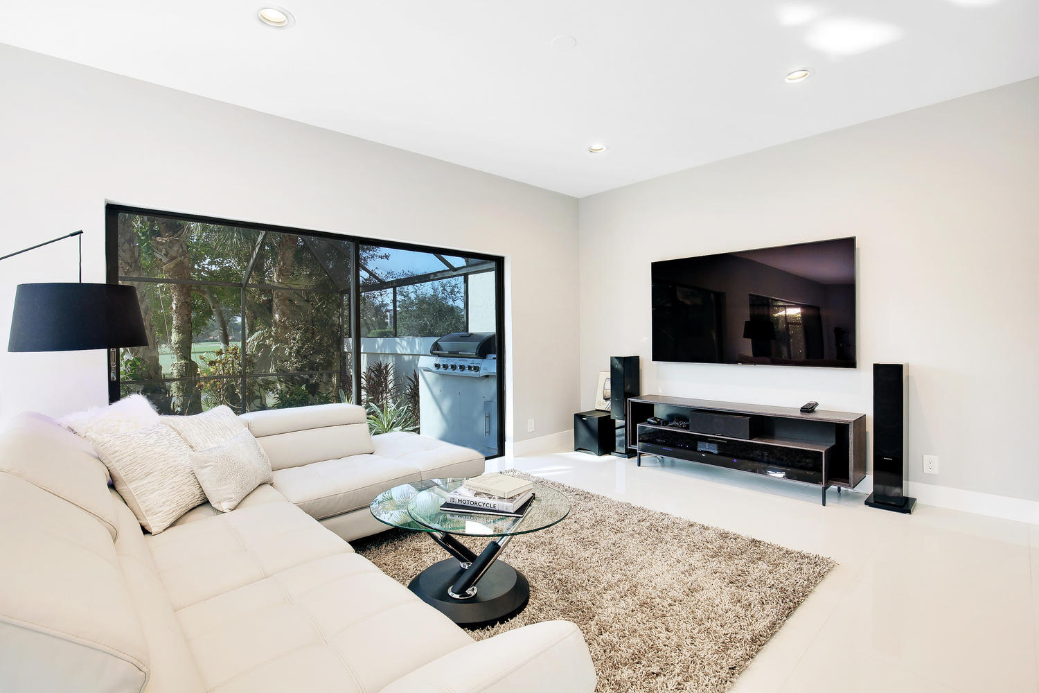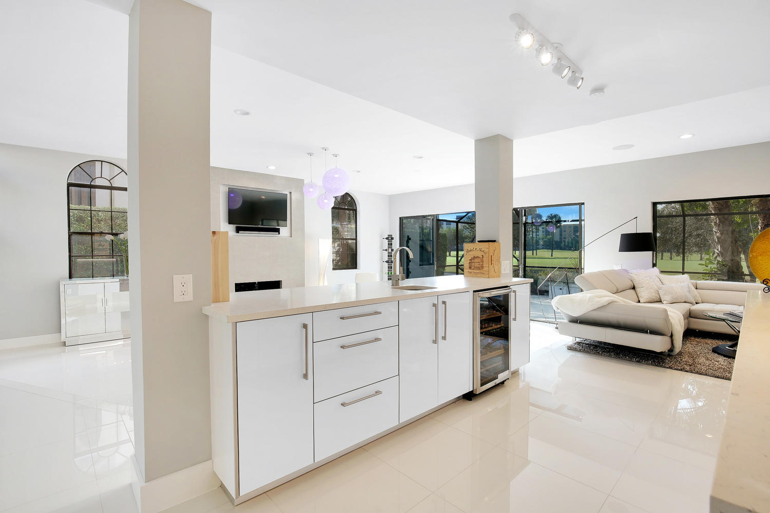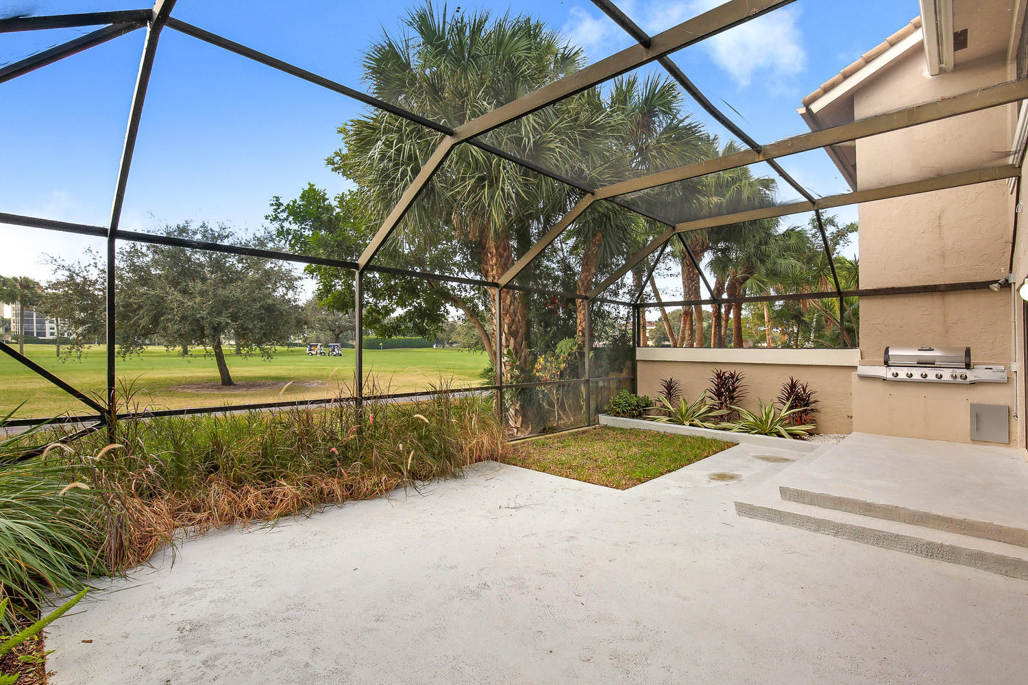 This is the life! Entertain friends and family in this impeccable and spacious renovated townhouse. Beautiful porcelain flooring and plenty of natural light flow throughout the living/dining room areas graced by a fireplace and a beautiful wet bar. .Sleek and stylish kitchen with stone counters, Bosch cook top w/hood, stainless steel appliances and double oven. Fabulous master bedroom with walk in closets and pedestal tub. The third bedroom can be an in-law or guest suite with a kitchenette and has its own entrance. Three A/C's replaced in 2016. Sliding doors lead out to the large screened in patio overlooking the golf course with a built in outdoor grill. Non-mandatory membership at Club at Boca Pointe. Enjoy the proximity to beaches, hospitals, restaurants and shopping.A rated schools