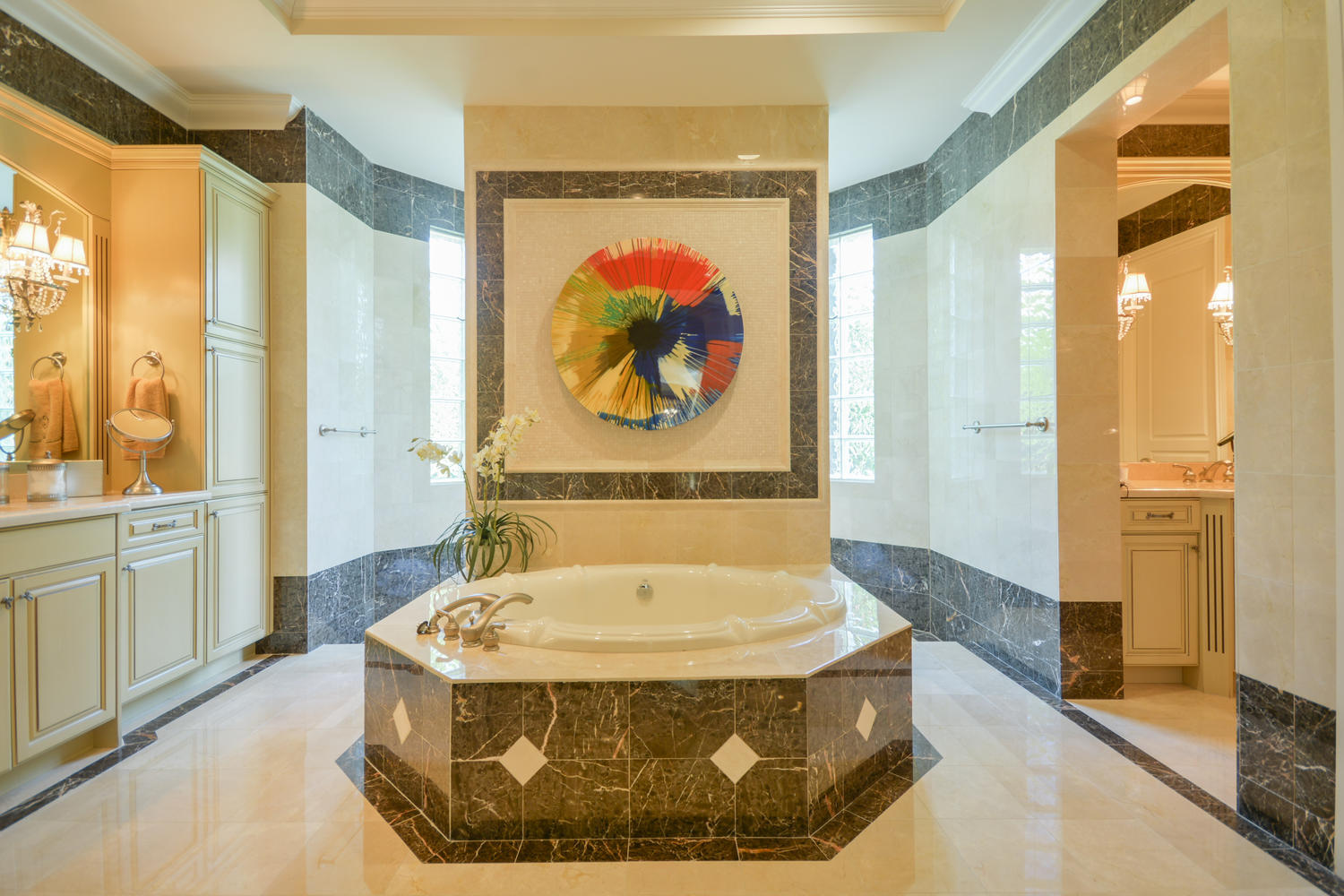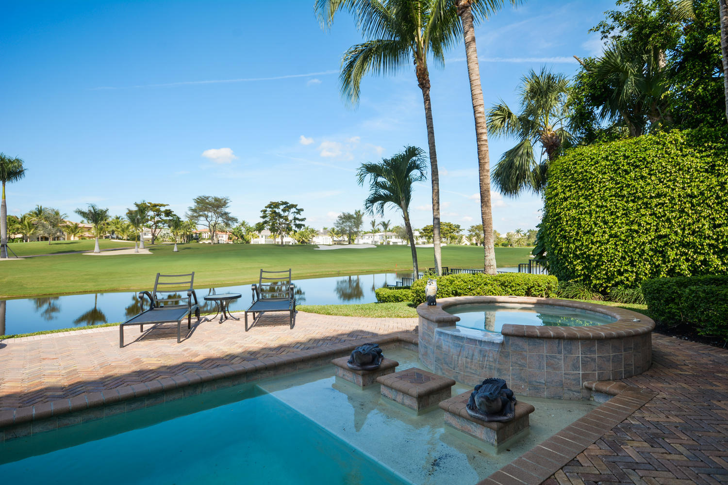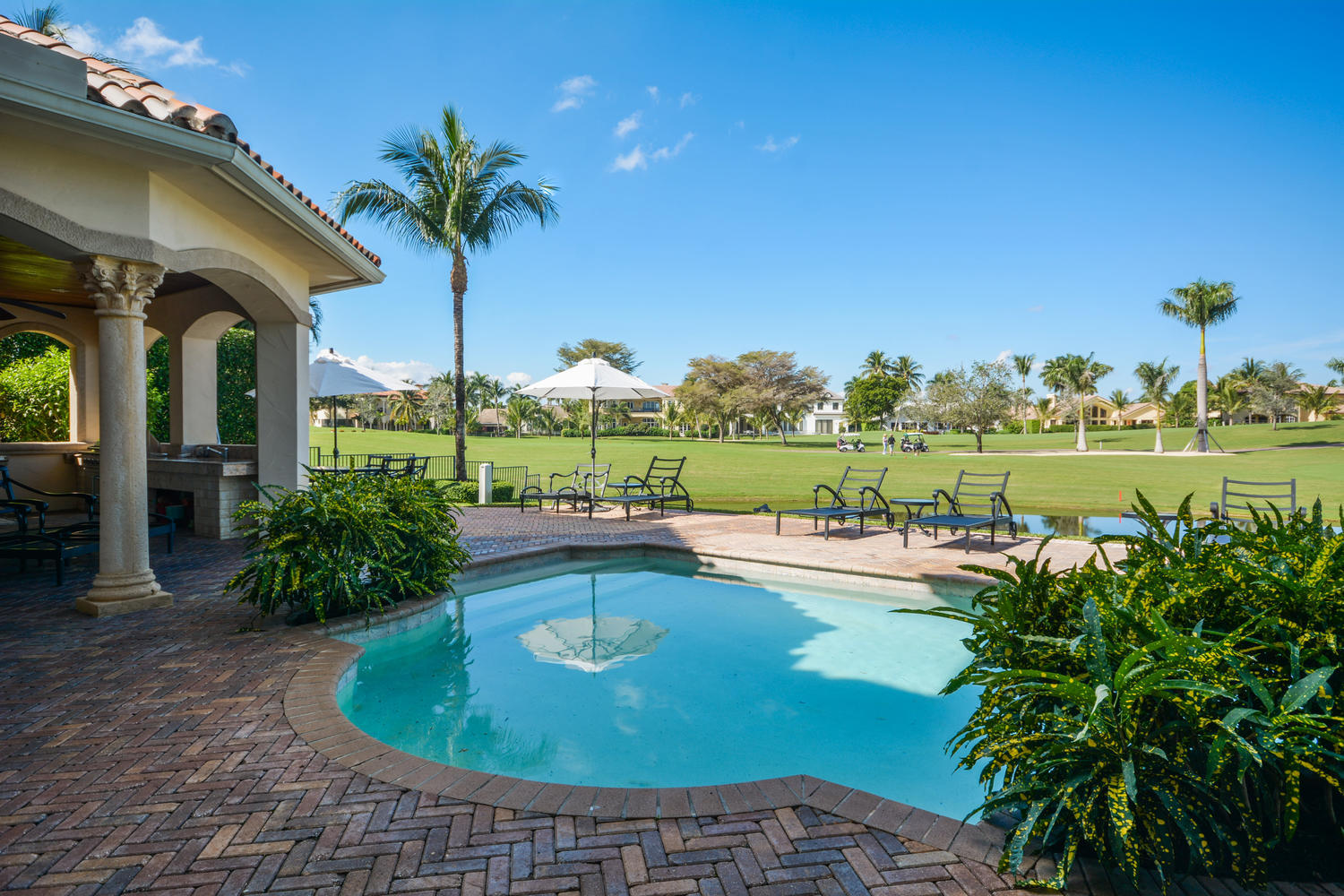 Dramatic 5 bedroom 6.5 bath estate on spectacular lake and double fairway golf course lot featuring a double stairway entrance foyer, spacious master suite with private office or retreat room, large media/game room with fireplace and built-in entertainment area, beautiful marble & hardwood flooring, gourmet kitchen overlooking the breakfast area and family room leading to outdoor entertainment area with resort style pool, spa and covered loggia with summer kitchen. The information herein is deemed reliable and subject to errors, omissions, and changes without notice. All measurements are approximate.