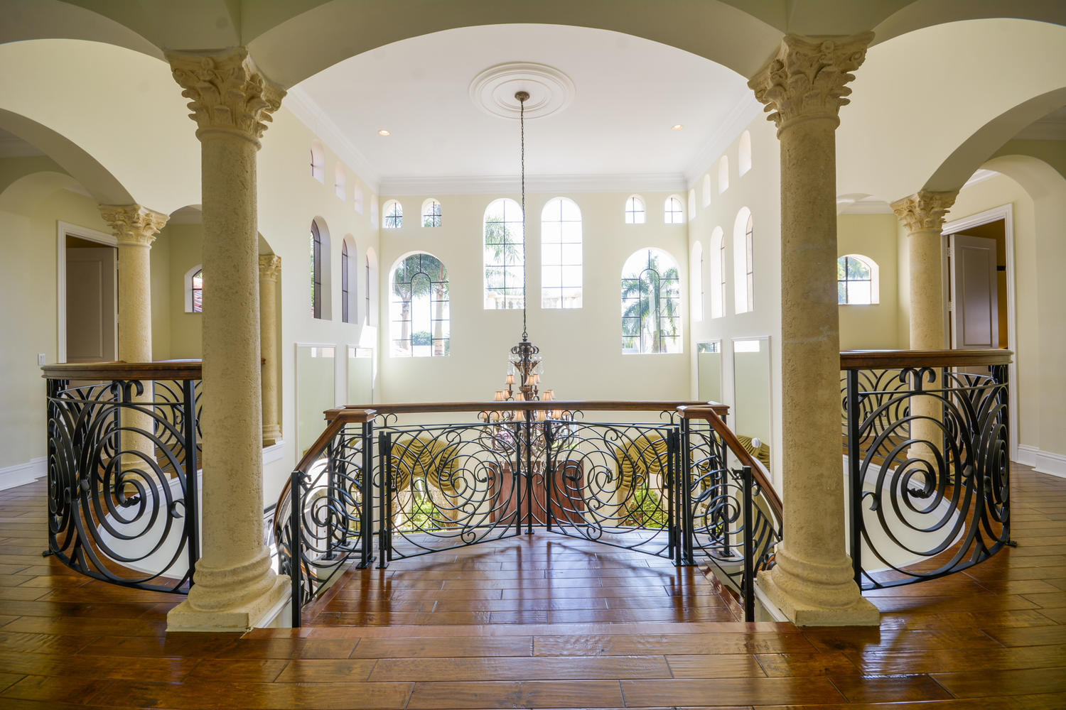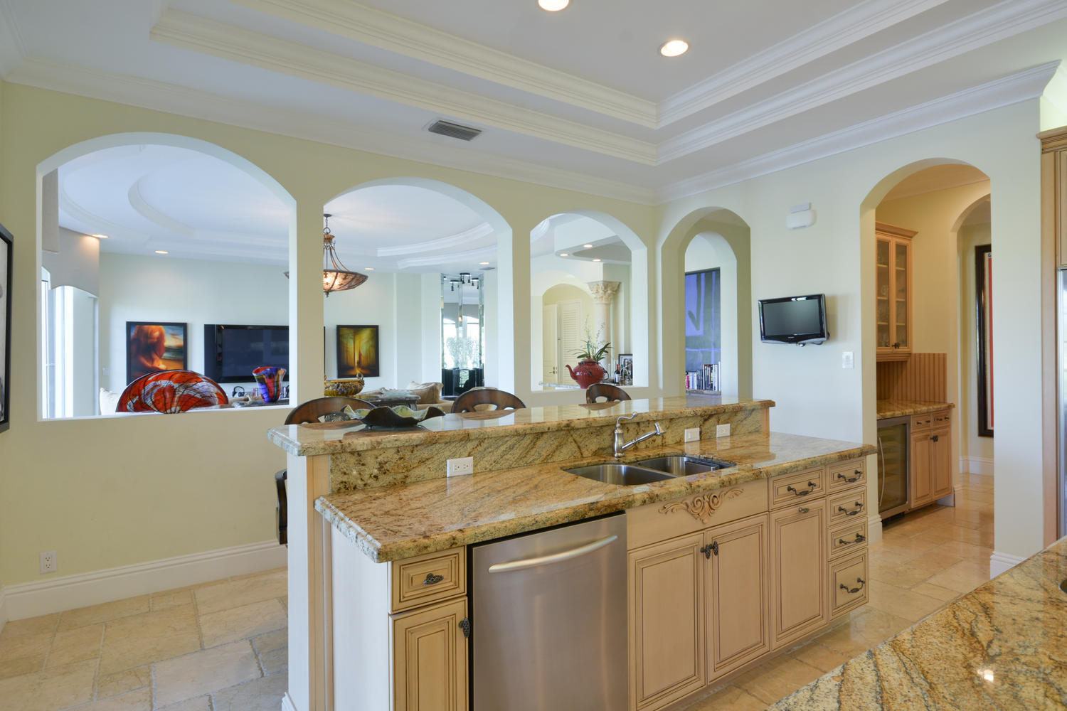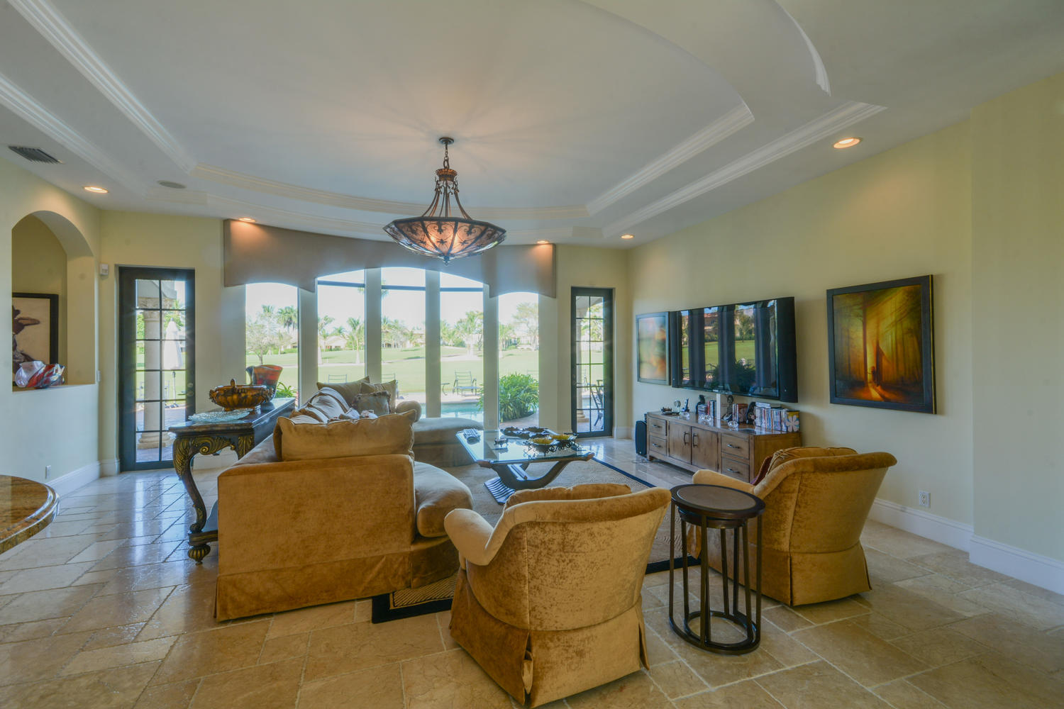 Dramatic 5 bedroom 6.5 bath estate on spectacular lake and double fairway golf course lot featuring a double stairway entrance foyer, spacious master suite with private office or retreat room, large media/game room with fireplace and built-in entertainment area, beautiful marble & hardwood flooring, gourmet kitchen overlooking the breakfast area and family room leading to outdoor entertainment area with resort style pool, spa and covered loggia with summer kitchen. The information herein is deemed reliable and subject to errors, omissions, and changes without notice. All measurements are approximate.