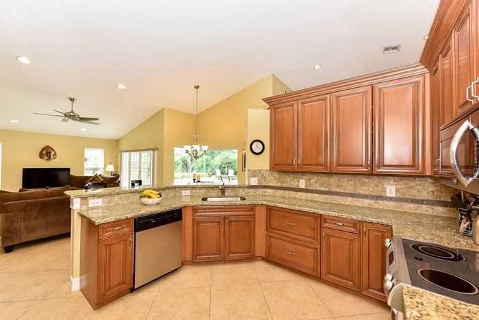 Here is that great Triple split home on water you have been looking for...loads of upgrades including newer roof, accordion shutters, upgraded flooring throughout, BRAND NEW KITCHEN, upgraded master bath, salt system for pool, hot water heater, new washer dryer, added Large circular driveway, landscape, window coverings, air ducts, new commodes and just painted. The back yard is fully fenced and more. come See!!!