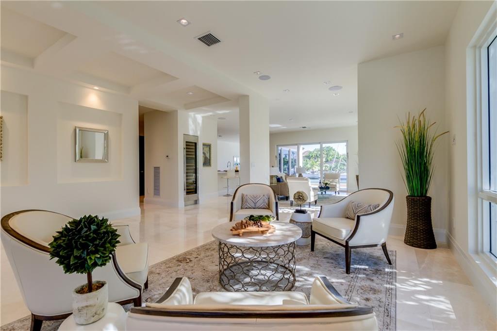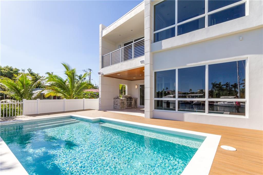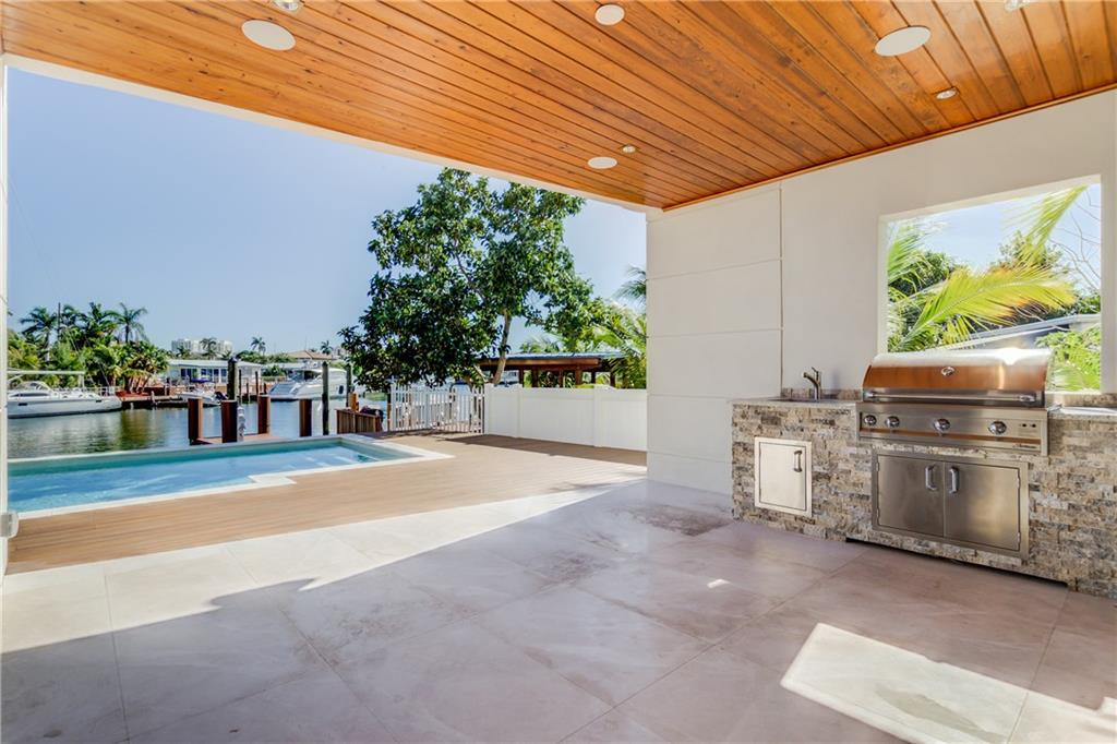 Sweeping water views greet you as you step into this spacious 4 bedroom, 5 1/2 bathroom modern residence with exquisite finishes. From the Mia Cucina designed kitchen complete with Wolf and Sub Zero appliances, to the French Vanilla marble flooring, no expense has been spared in this new residence in one of Fort Lauderdale’s most desirable neighborhoods. Dock your boat (+/-44 ft.) while entertaining guests by the pool’s summer kitchen. East Fort Lauderdale’s lowest priced SF waterfront new build.