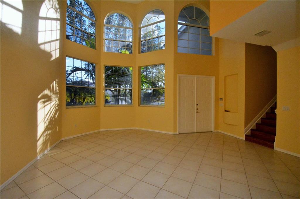 Enjoy the oversized pool, patio and expansive fenced in backyard of this 2 story home. The lush landscaping provides privacy and a resort style feel. Upper level has all wood floors, lower level has tile set on the diagonal. Kitchen has beautiful real wood cabinetry. Home is protected by accordion shutters. The quiet cul de sac makes this the perfect location! Gated community w/abundant green areas & parks.
